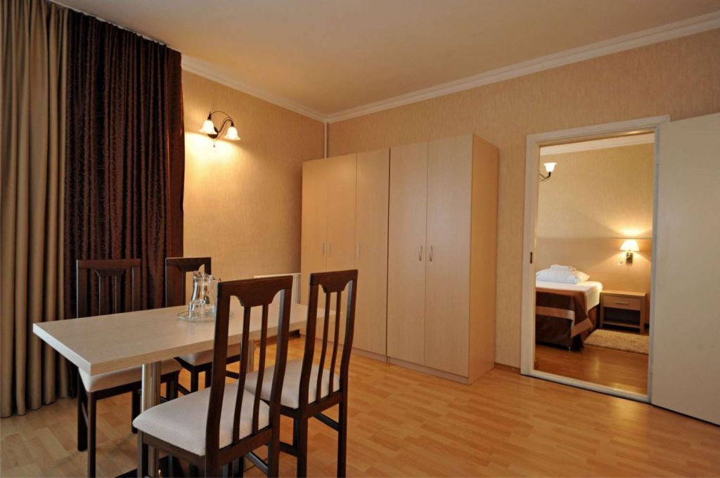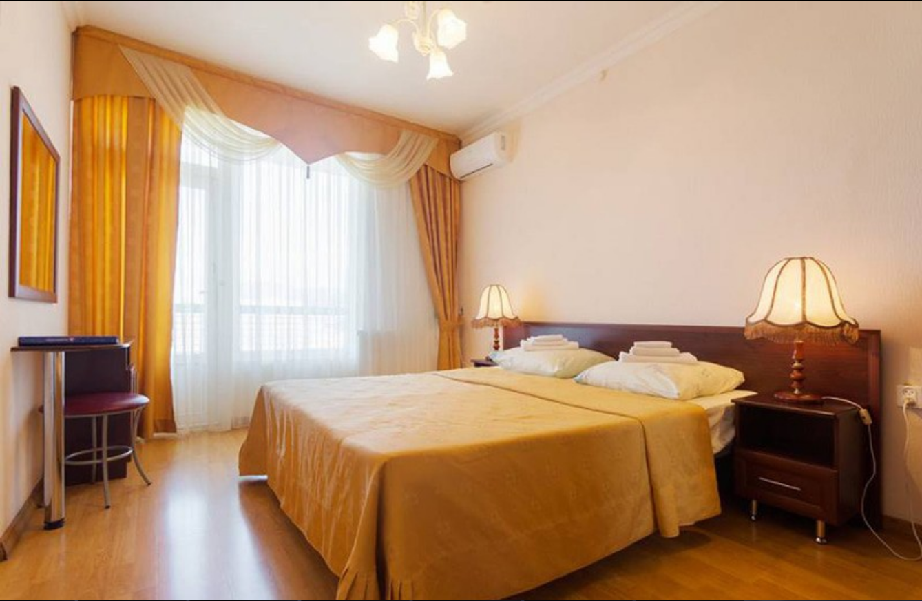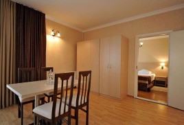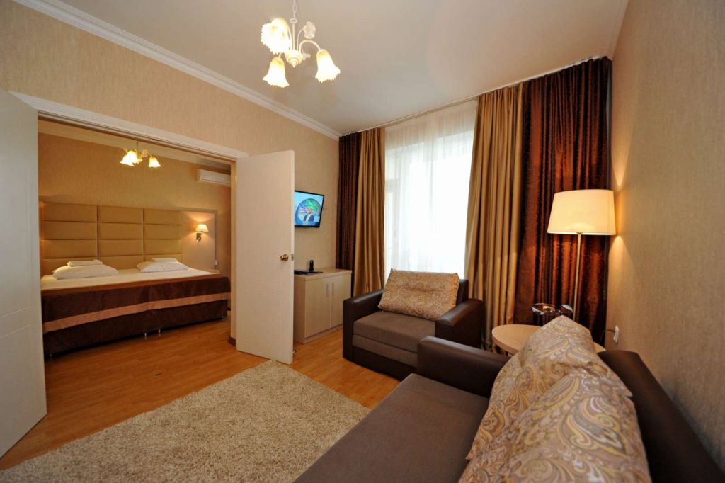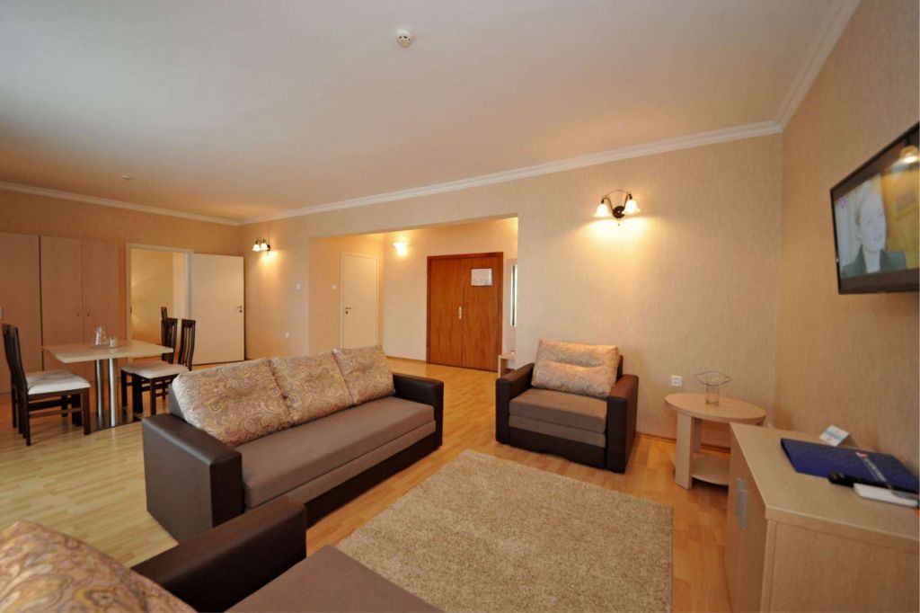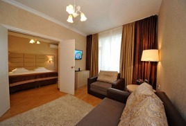 - 2-местный 2-комнатный люкс (макс. 2+2 чел., 32 кв. м, телевизор, кондиционер, душ, ванна, туалет, холодильник, балкон, телефон, мягкая мебель, мебель на балконе, 1-спальные/ 2-спальная кровать).