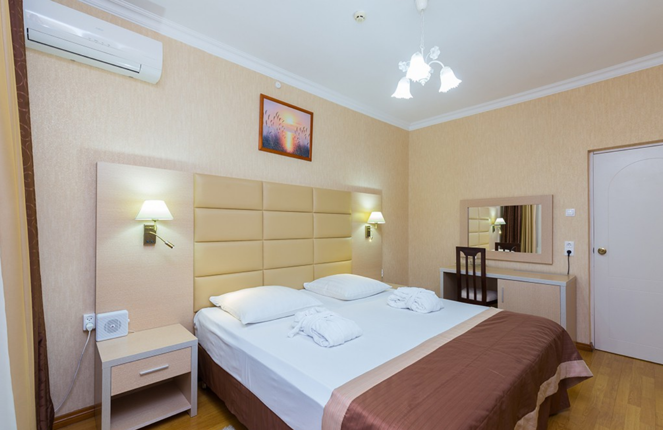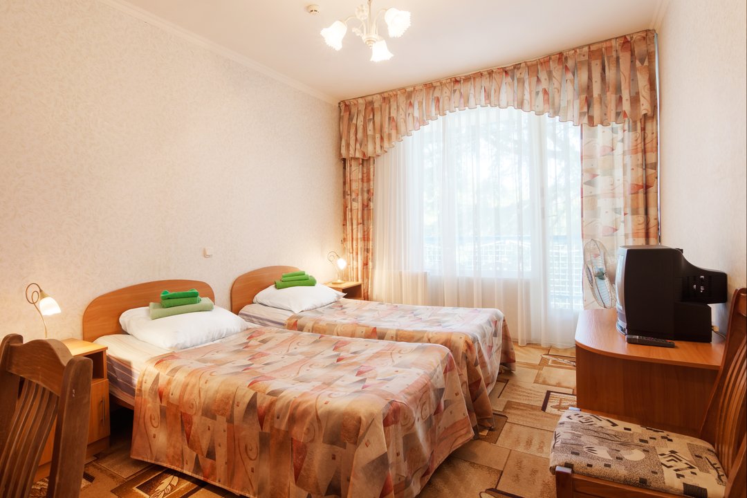 - 2-местный 1 категории (комфорт - после ремонта 2018 года) (макс. 2+1 чел., 16 кв. м, телевизор, кондиционер, душ, туалет, холодильник, балкон, мебель на балконе).