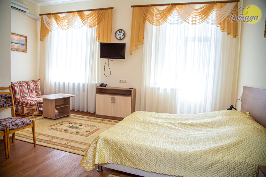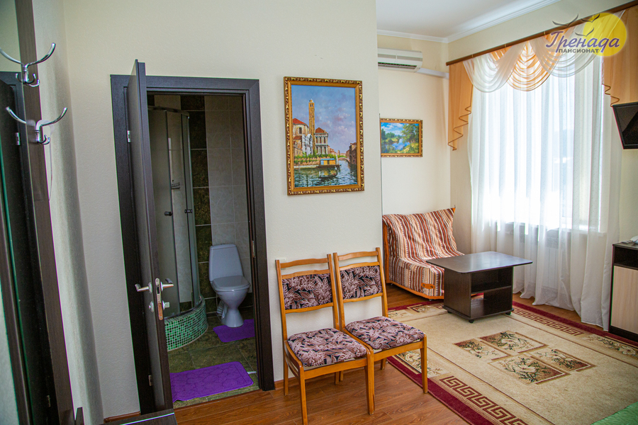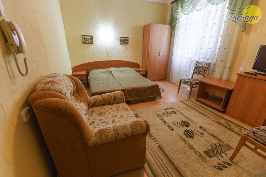 Пансионат «Гренада» расположен в центральной части поселка Лазаревское в 400 метрах от моря. Территория пансионата площадью 7,4 га расположена в лесопарковой зоне поселка.
