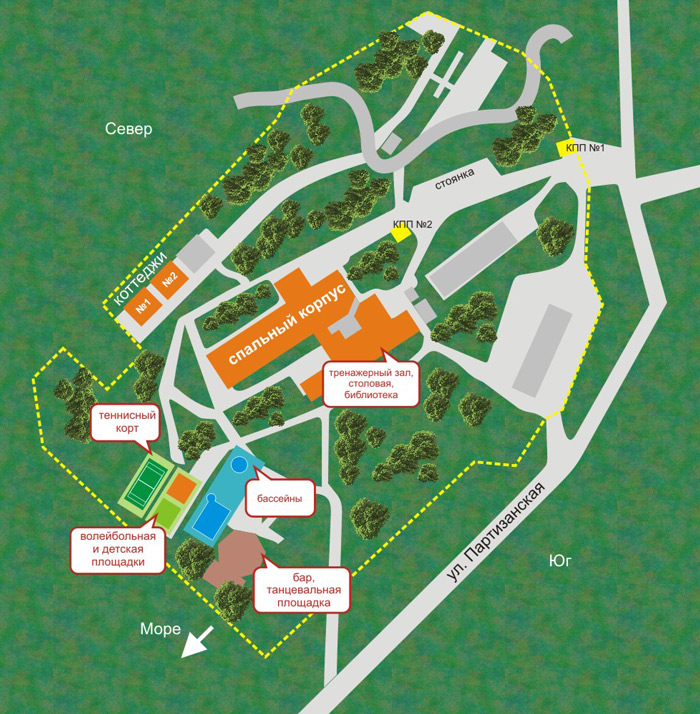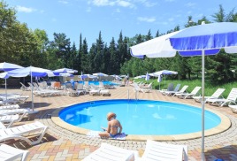Пляж: в 500 метрах от корпуса собственный пляж, с прокатом гидроциклов, гидровелосипедов и аквабайков. Пляжный комплекс: шезлонги, зонты, лежаки, душ, туалет, доставка на пляж и обратно осуществляется транспортом пансионата.