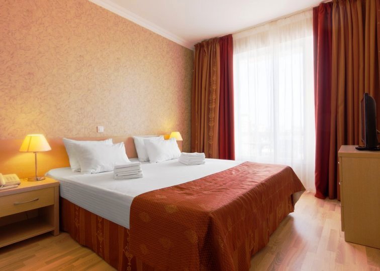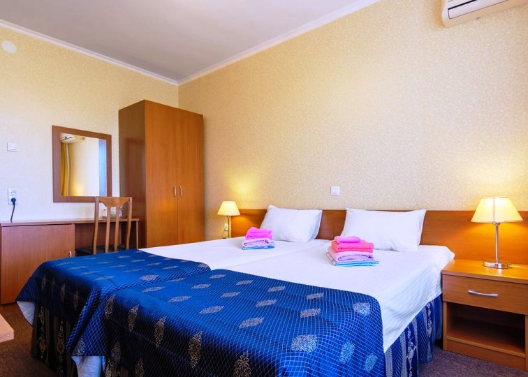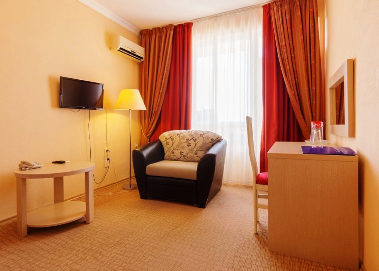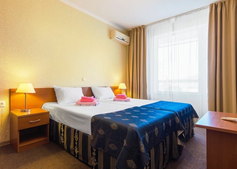 Уютный однокомнатный номер, оснащенный современной мебелью. Балкон с видом на парк или море. В номере: Кондиционер, холодильник, плазменный телевизор, шкаф, телефон, душевая кабина, фен, косметический набор. Жилая площадь номера 16 кв.м.