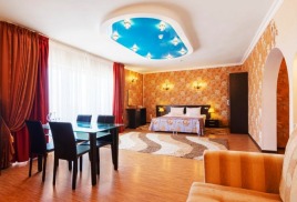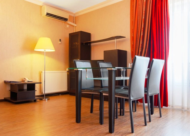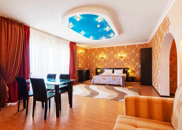 В номере: Кондиционер, холодильник, плазменный телевизор, шкаф, обеденный стол на 4 человека, телефон, ванная комната, фен, косметический набор. Жилая площадь номера 49 кв.м.