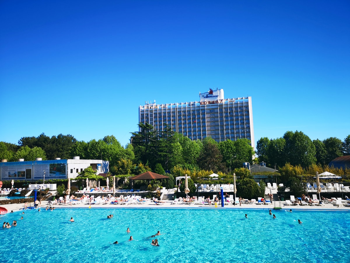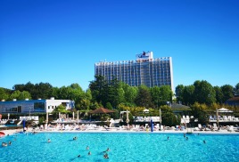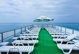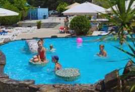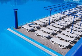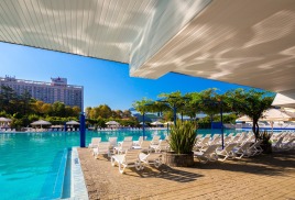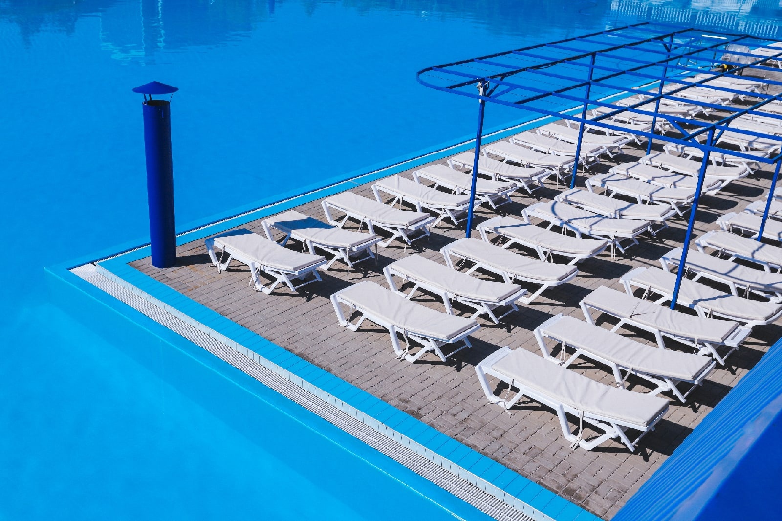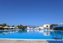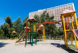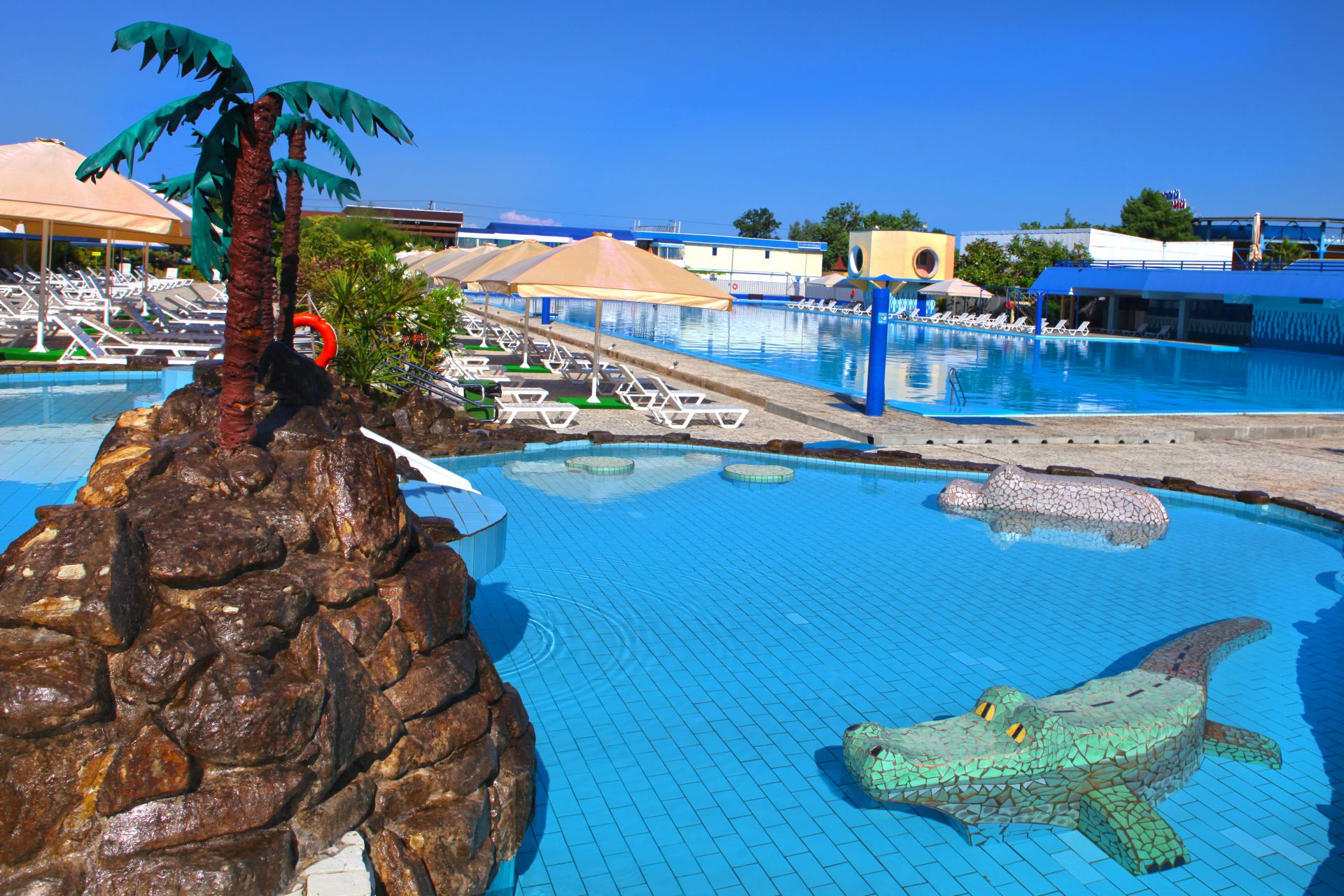 - открытый подогреваемый бассейн с морской водой (площадь зеркала воды = 3000 кв. м. Глубина – 1,45 м.Для самых маленьких имеется детская 2-х уровневая плескательница с горкой, глубиной 0,6 м, детский плавательный бассейн глубиной 0,9 м.). Работает круглогодично. Для комфортного отдыха на территории бассейна расположены душевые, санузел, медпункт, кафе, деревянные лежаки и теневые навесы. Режим работы бассейна с 9:00 до 19:00 без выходных.