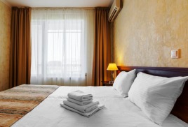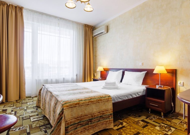 Просторный номер с двумя односпальными кроватями, либо одной двуспальной кроватью. Оснащен всем необходимым для Вашего комфортного пребывания. Жилая площадь номера 16 кв.м.