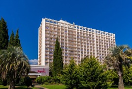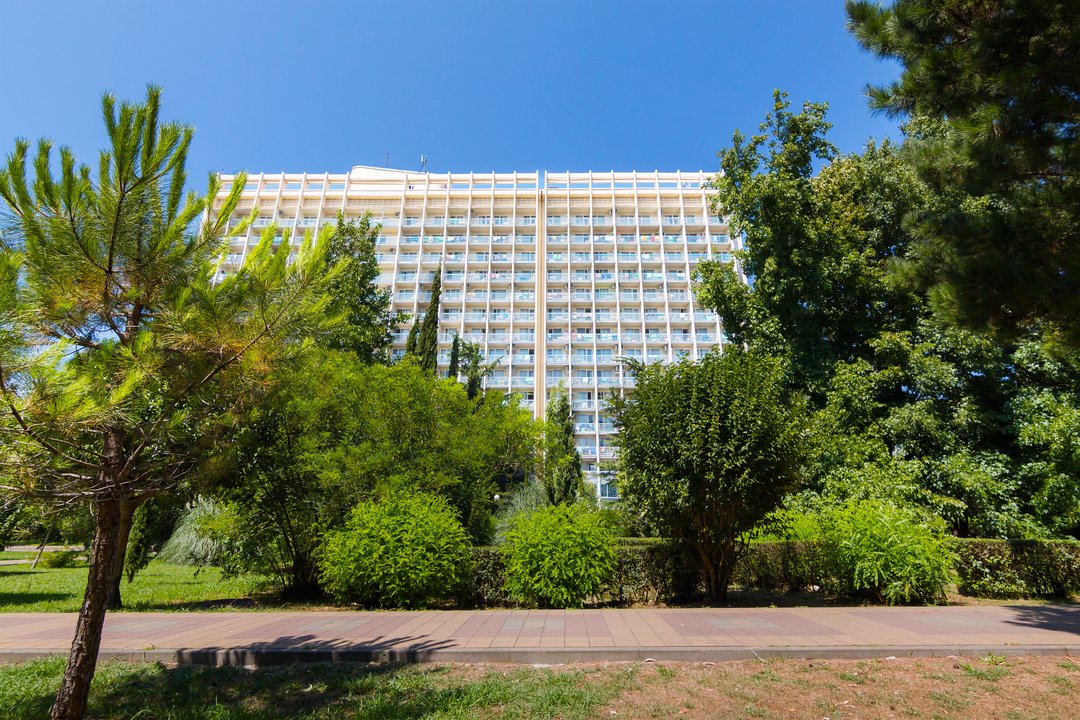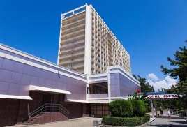 Номерной фонд: Корпус санатория представляет собой высотное здание в 15 этажей, оборудованное 4 лифтами. В корпусе расположена столовая (на 2м этаже) и лечебное отделение.