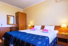 Большой трехкомнатный номер прекрасно подойдет для проживания 4-х человек: две спальные комнаты и гостиная. С балкона открывается прекрасный вид на море и горы. В номере две ванные комнаты (душ, ванна), вместительный шкаф, столик с зеркалом. В номере: кондиционер, холодильник, телевизор, мягкая мебель, кухонный уголок. Жилая площадь номера 81 кв.м.