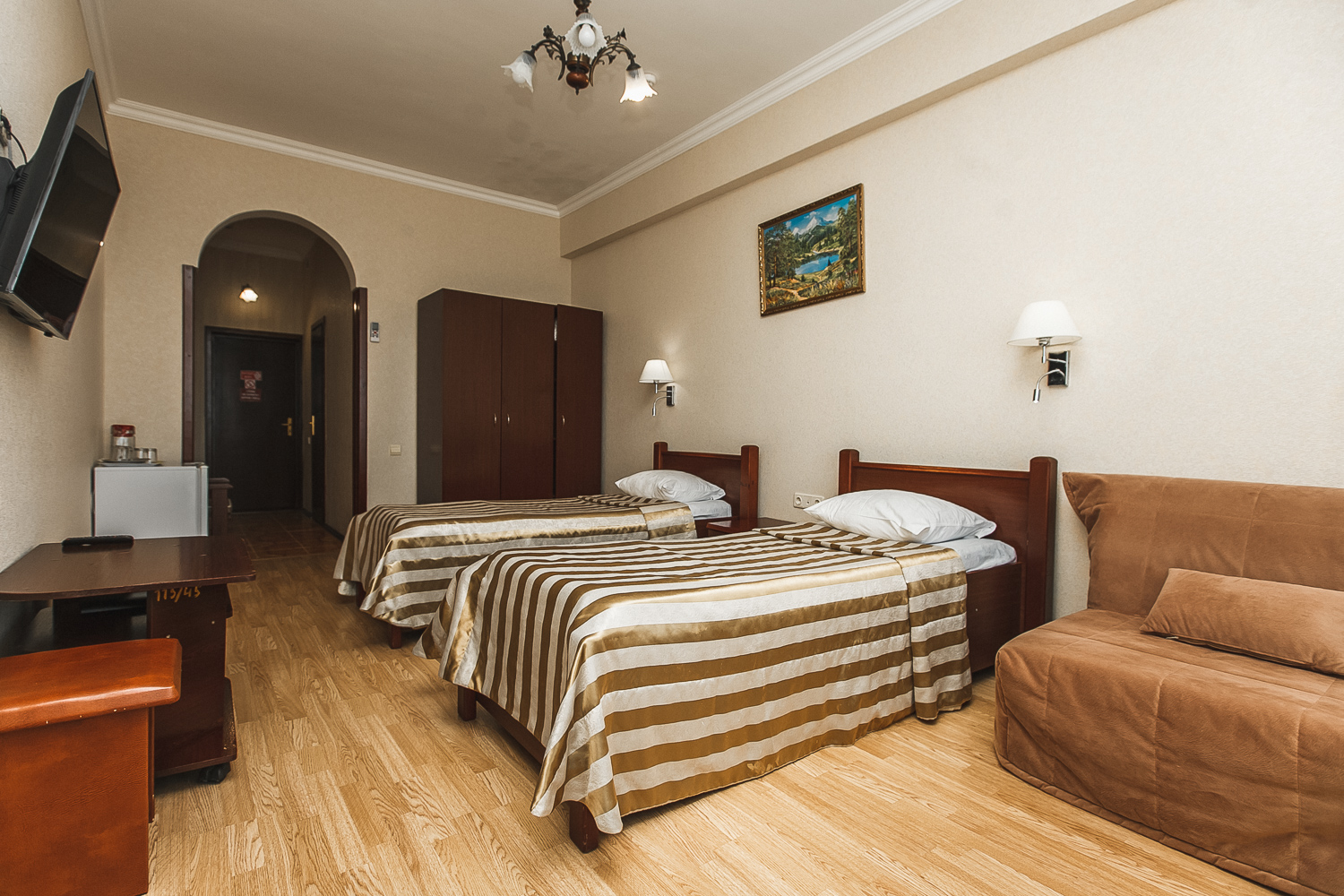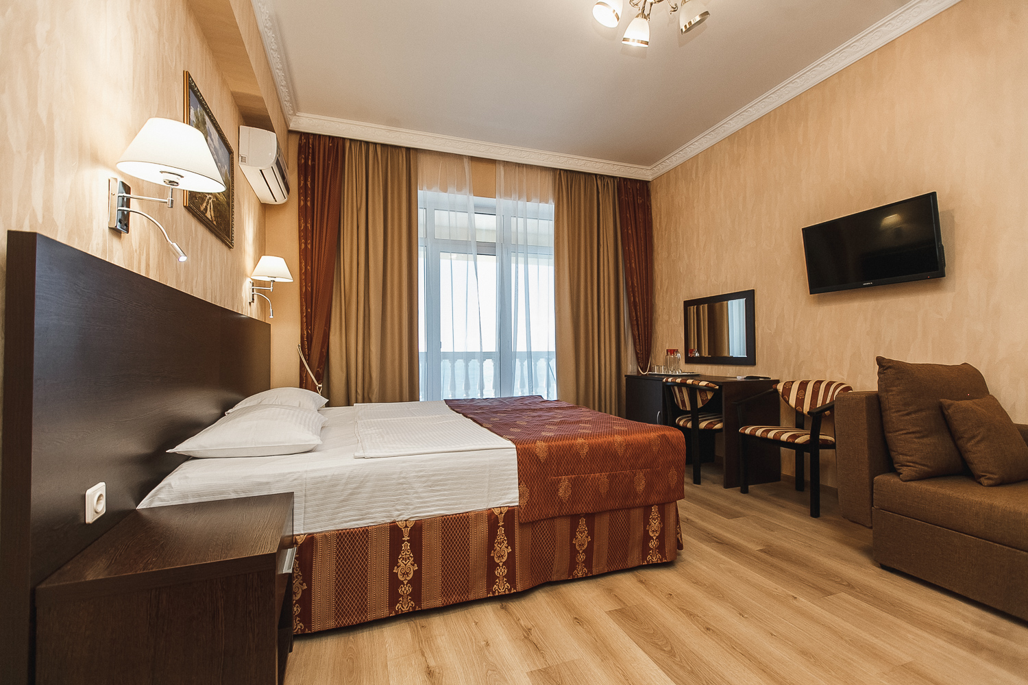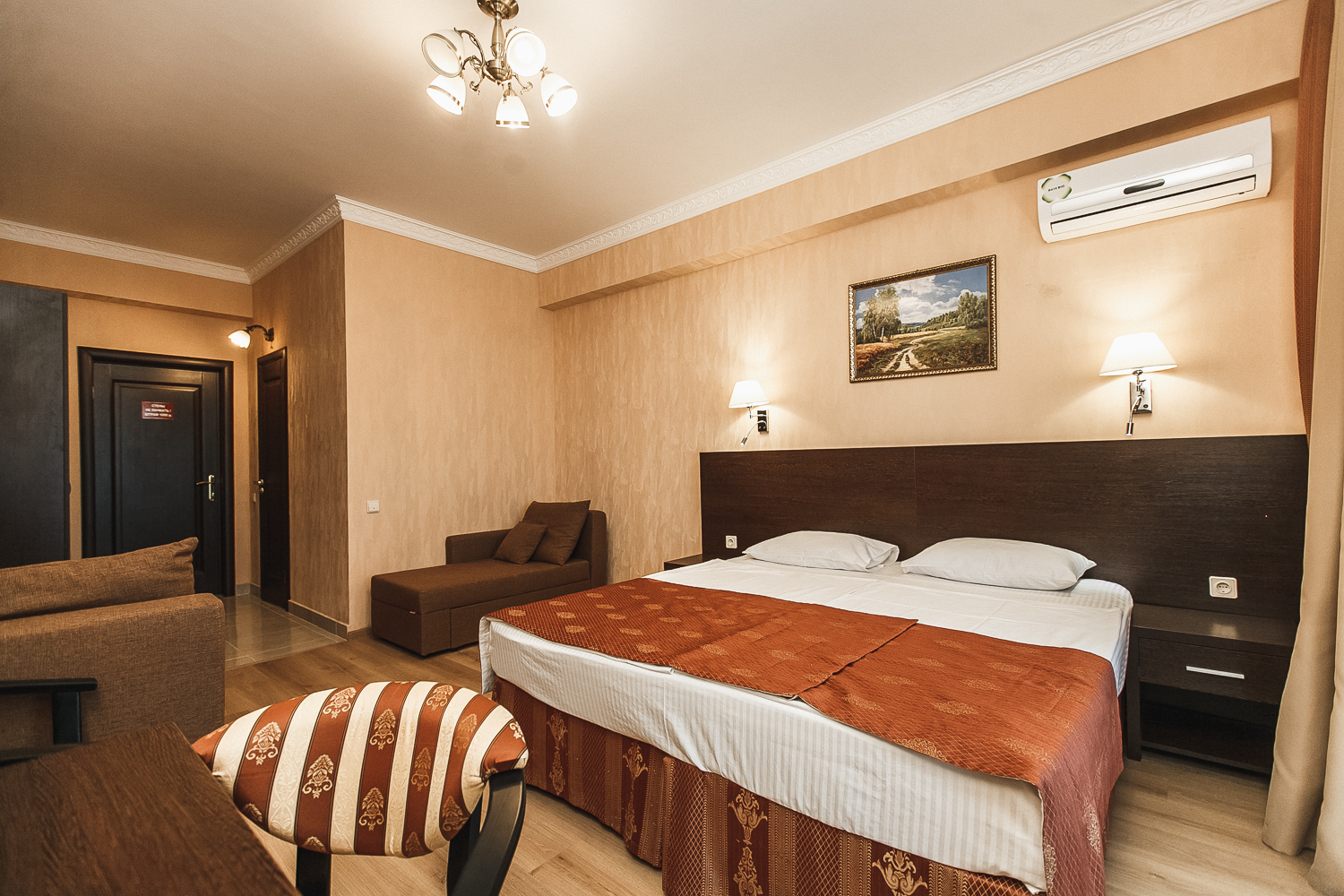 В номере: ванна/душ, туалет, ТВ, холодильник, кондиционер, телефон, двуспальная или две раздельные кровати, диван.