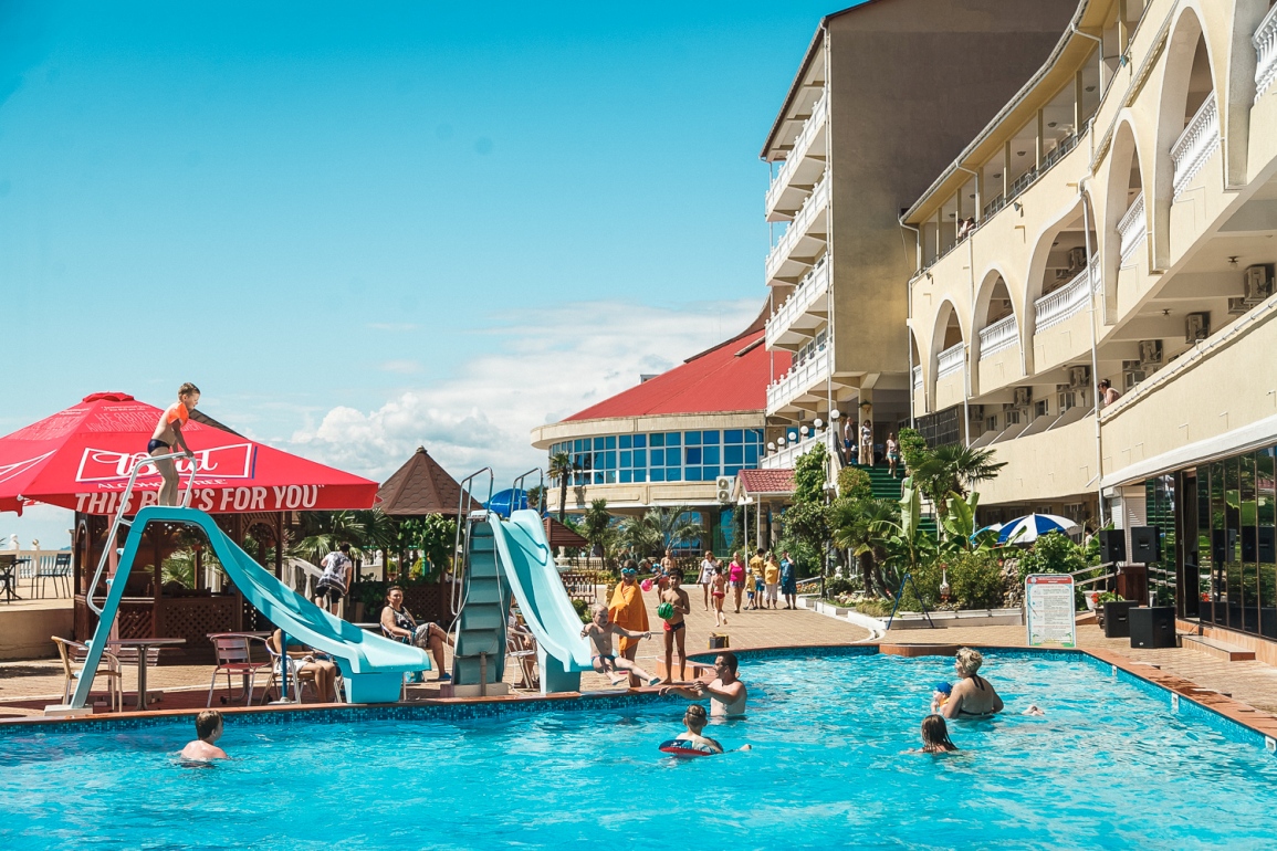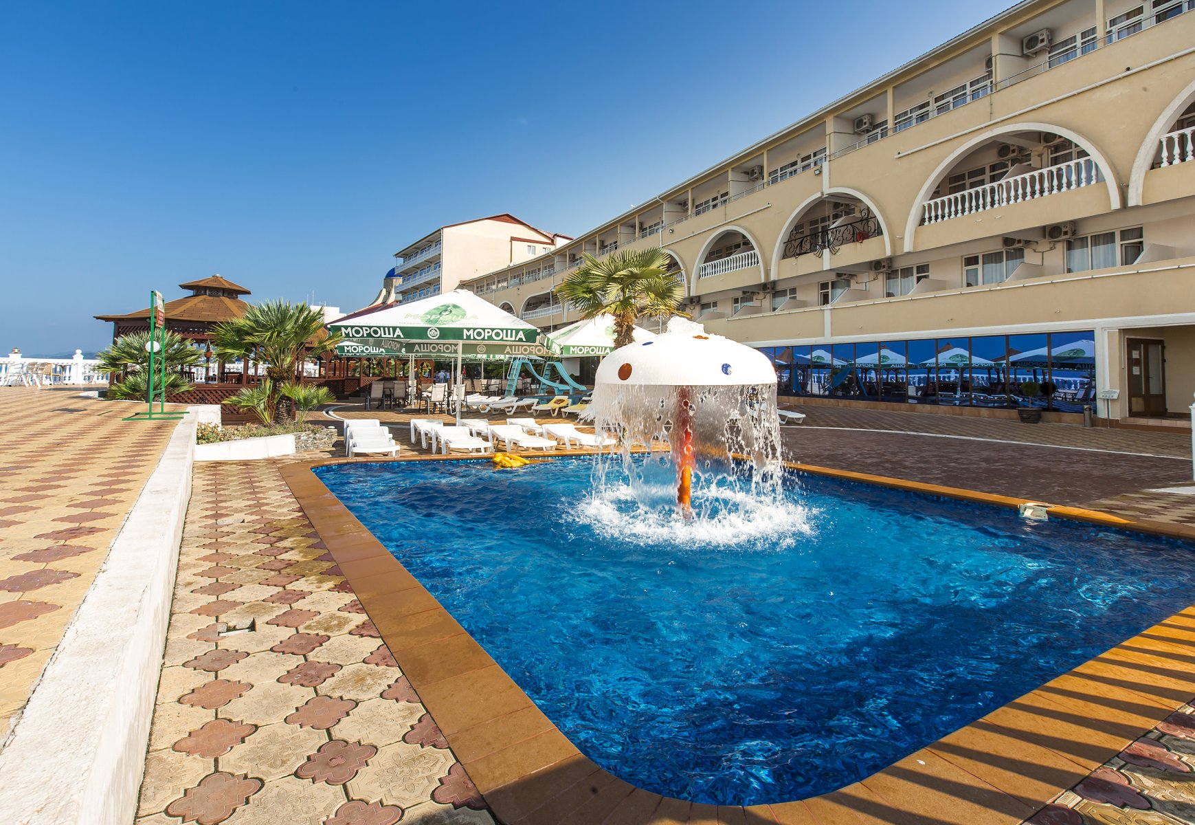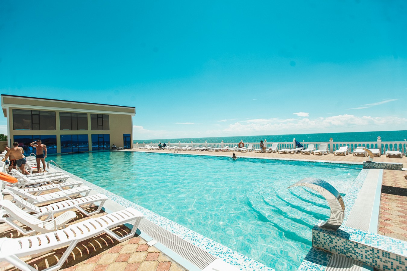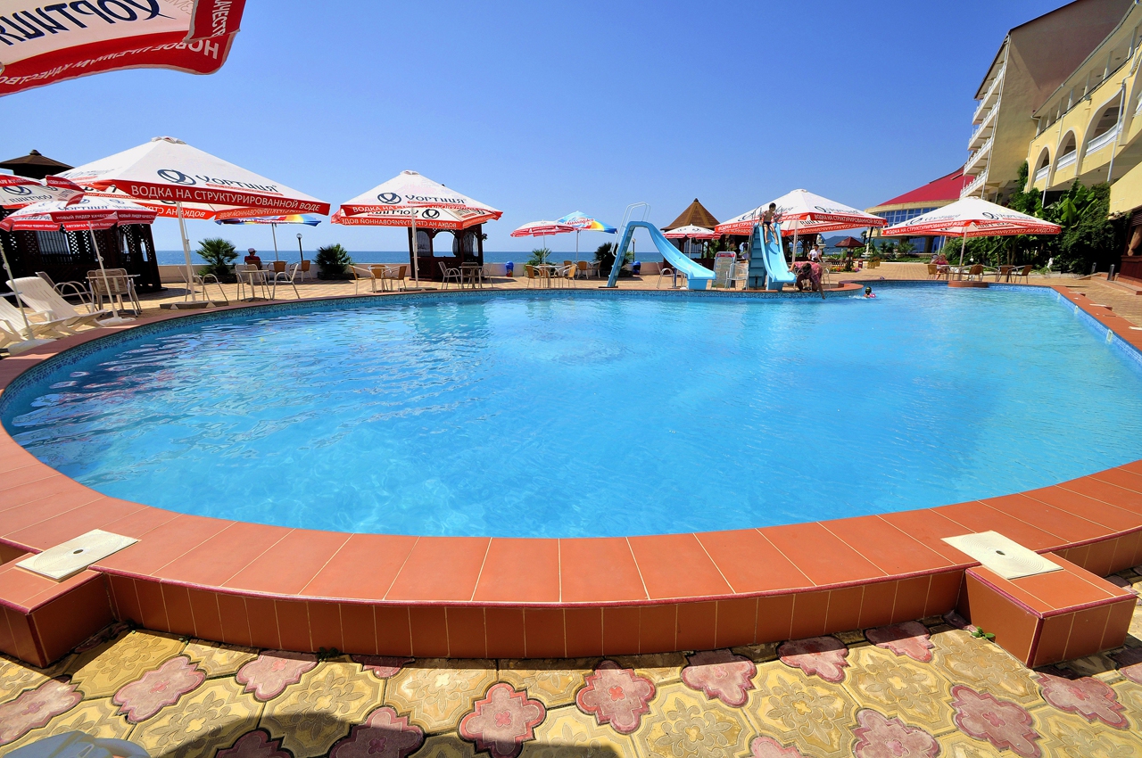 - открытый бассейн с морской водой не подогреваемый, работает с июня по сентябрь