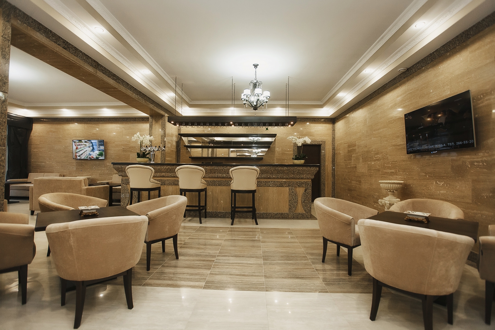 В номере: ванна/душ, туалет, ТВ, холодильник, барная стойка (часть номеров), кондиционер, телефон, двуспальная или две раздельные кровати, диван.