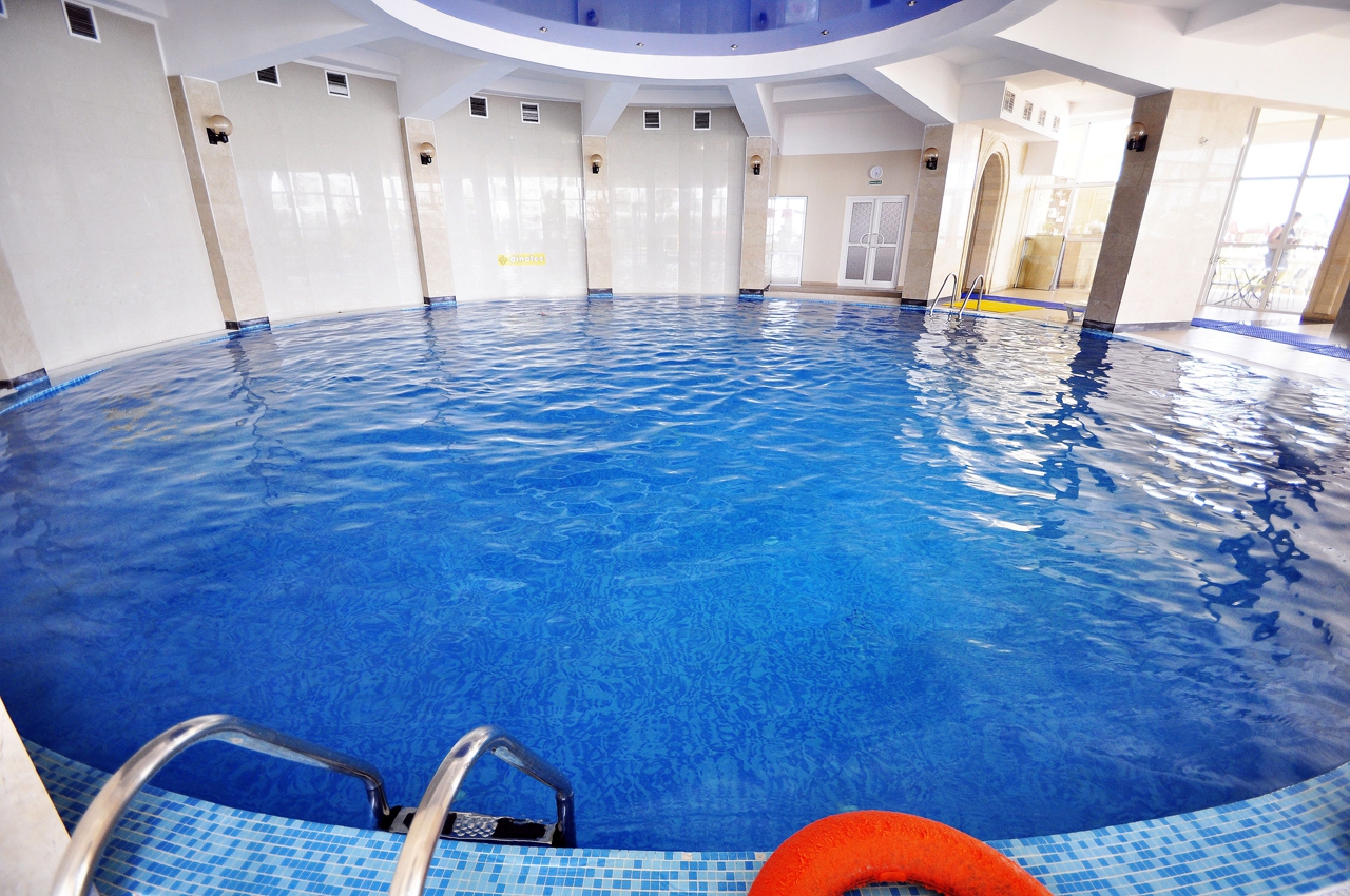 - крытый бассейн с пресной водой, диаметр - 12 м, глубина 1,5 м., расположен в корпусе Б; работает: с марта по июнь, с октября по декабрь