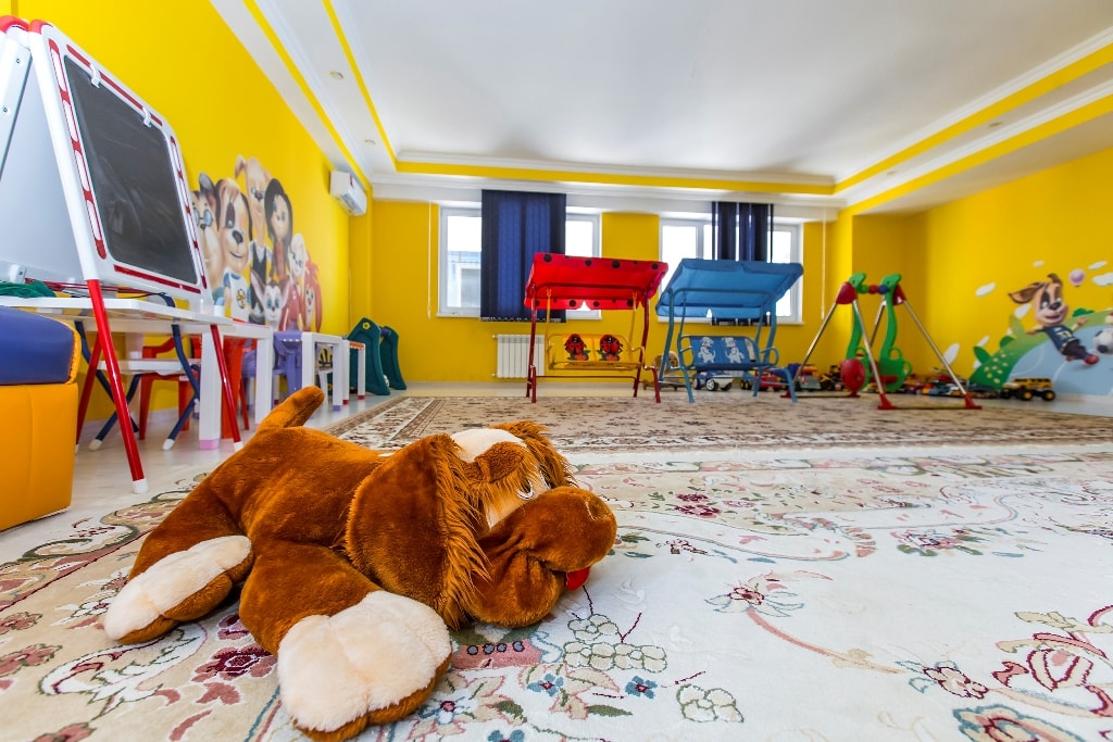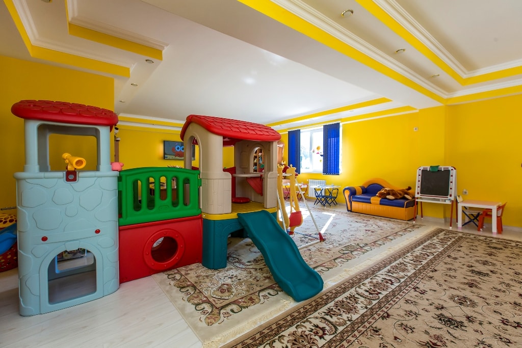 - детская комната с воспитателем ( бесплатно), детская площадка, детская анимация, детские стульчики в ресторане