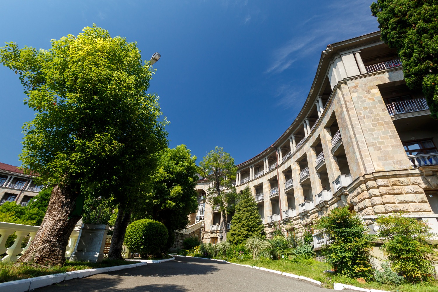 Санаторий "Металлург" - это крупный санаторно-курортный комплекс, построенный в Сочи в 1956 году в стиле классического барокко. Санаторий "Металлург" окружен парком вечнозеленых субтропических и хвойных растений. А с балконов номеров открывается прекрасный вид на парк, море, вечерний закат.
