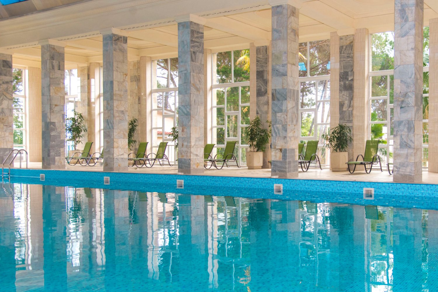 - крытый подогреваемый бассейн с морской водой (в стоимость входит одно бесплатное посещение в день продолжительностью 1 час, включая посещение сауны и хаммама). Дети в бассейн допускаются стого в сопровождении родителей с 7 лет и ростом не менее 120 см.