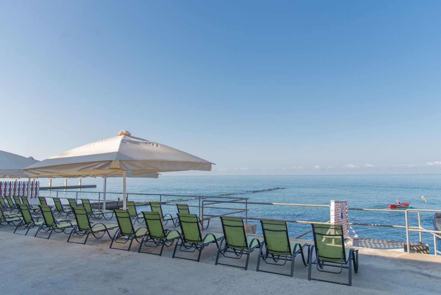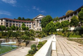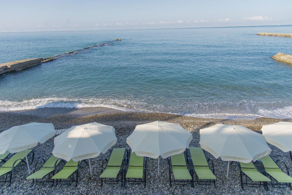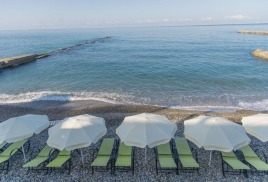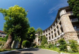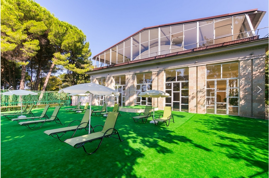 Пляж: Пляж находится в шаговой доступности от санатория (800 м.), прибрежная полоса – мелкая галька. К услугам: теневая зона, душевые, удобные шезлонги и зонты. Организован трансфер на пляж несколько раз в день по расписанию.