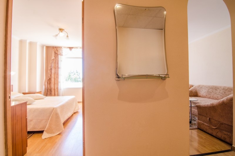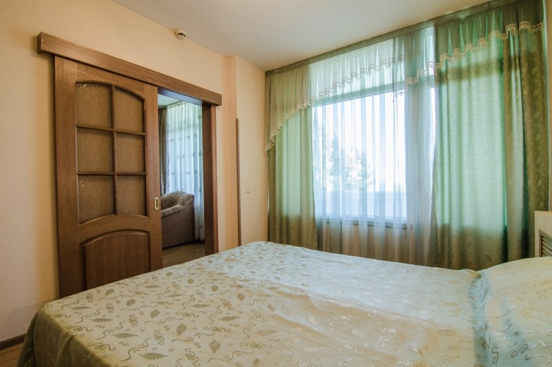 - 2-х местный 2-х комнатный люкс. Площадь: 32 кв. Двухкомнатный номер, состоит из гостиной, спальни и ванной комнаты. В номере: балкон, двуспальная кровать, прикроватные тумбочки, письменный стол, холодильник, телефон, кондиционер, ЖК телевизор, фен. Санузел с душем.
