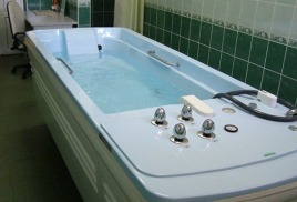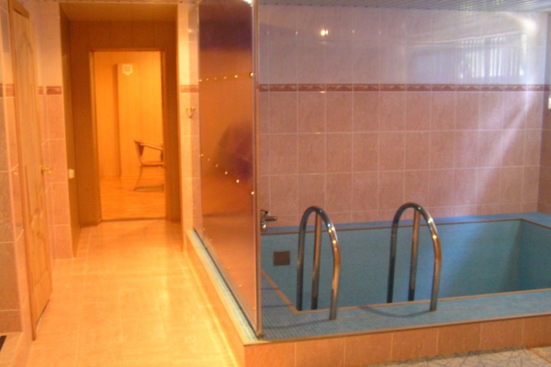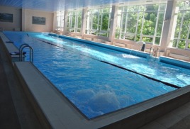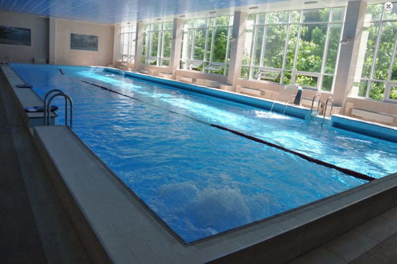 - крытый бассейн подогреваемый с пресной водой, работает с октября по май, размер 25х6 м
