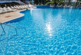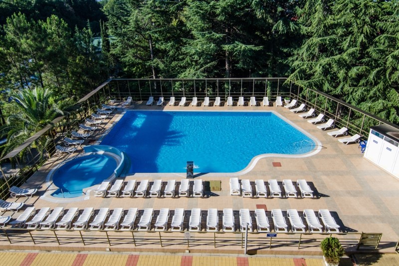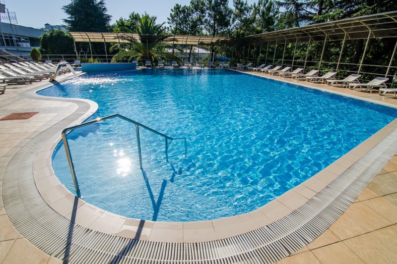 - открытый бассейн подогреваемый с пресной водой, работает с июня по октябрь, размер 25м*7,5м, есть десткое отделение