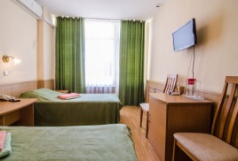 - 2-х местный 1-но комнатный номер Площадь: 16 кв.м. В номере: балкон, две односпальные кровати/одна двуспальная кровать, холодильник, телефон,кондиционер, телевизор. Санузел с душем.