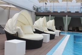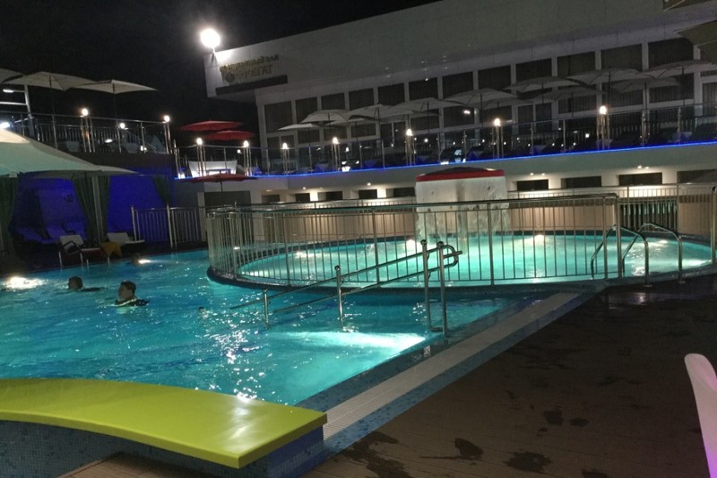 VIP бассейн (детский и взрослый бассейны, удобные шезлонги, бунгало, джакузи, пул - бар) - платно - взрослый - 1000 руб, дети с 3 до 7 лет - 500 руб., дети до 2х вкл. - бесплатно.