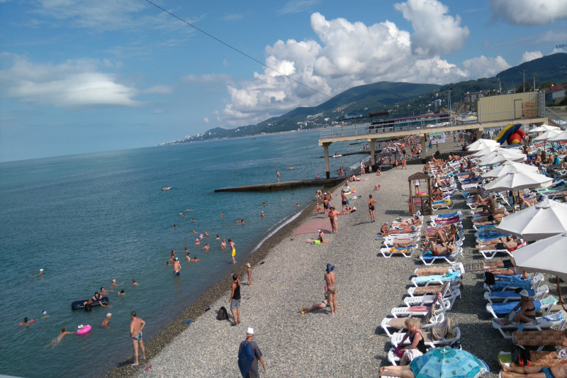 От аэропорта - на маршрутном такси в сторону Сочи. Ехать до остановки "Известия" или "АЗС" около 15 минут.