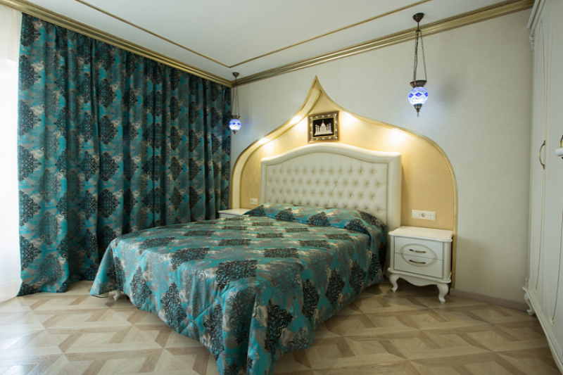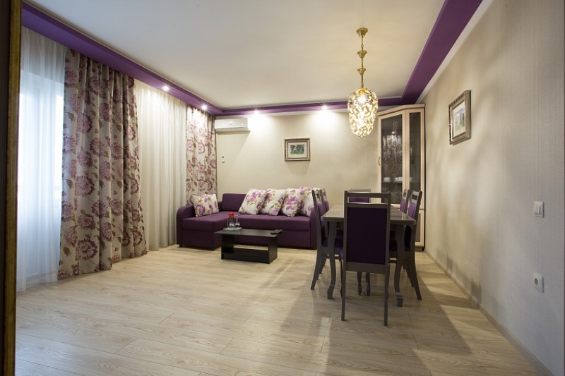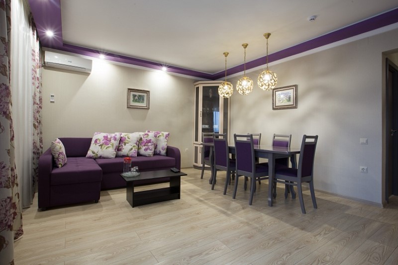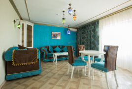 2-х местный 2-х комнатный Люкс. Площадь - 32м². Состоит из спальни, гостиной, 2-х сан.узлов (полный с/у и неполный), 2-х балконов. В номере: двуспальная кровать , прикроватные тумбочки, мягкая мебель, журнальный столик, кондиционер, телевизор, холодильник, фен, сейф, электрочайник и чайные принадлежности, набор посуда, халат и тапочки. Возможно размещение с домашними животными. Дополнительное место – раскладной диван. В ванной комнате: Полный с/у - ванна, раковина, биде, туалет, стандартный набор туалетных средств. Неполный с/у — раковина, туалет. Балкон: все номера с балконами, имеется вид на море и горы. На балконе удобный пляжный столик и стулья, настенная сушилка для белья.