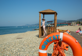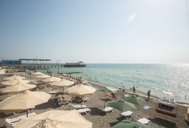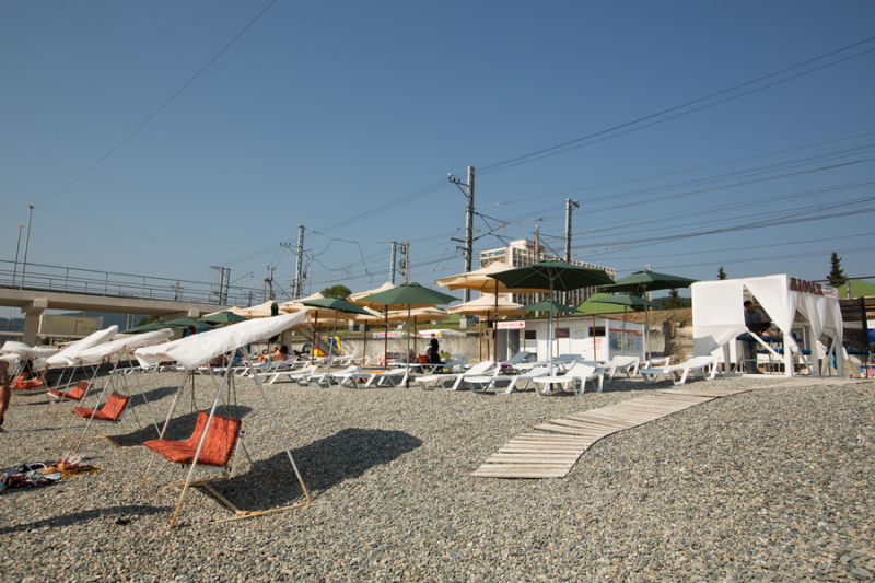 Пляж: пляж пансионата «Фрегат» находится в 50 метрах от отеля.Протяжённость пляжа - 250-300 метров. Пляж галечный. Для комфортного отдыха рекомендуется взять аквашузы, в которых удобно ходить по гальке. На территории галечного пляжа работает пункт аренды шезлонгов и зонтиков. Аренда шезлонгов для наших гостей 50 руб. ( по карте гостя)