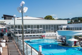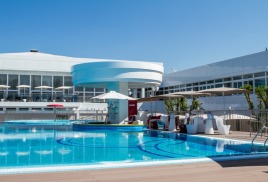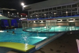открытый бассейн с морской водой , находится в 500 метрах от отеля. Вход бесплатный, по картам гостя. Площадь зеркала воды = 3000 кв.м. Глубина - 1,45м. Детская 2-х уровневая плескательница с горкой - глубиной 0,6 м, детский плавательный бассейн глубиной 0,9 м.