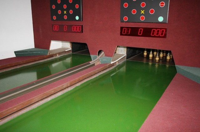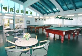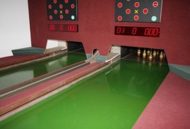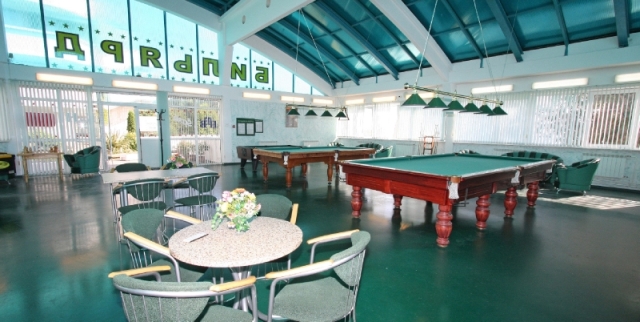 игровой центр, в котором есть бильярдные столы, кегельбан, лазерный тир