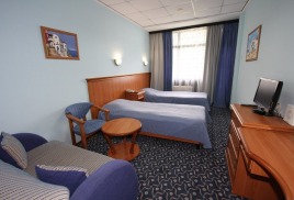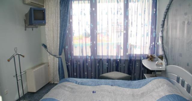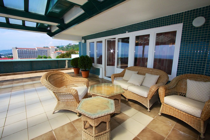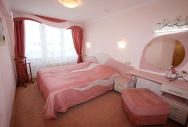 Люкс трехкомнатный двухместный с террасой: трехкомнатный люкс с гостинной, детской, спальней, двумя санузлами и открытой террасой, Телевизор, Холодильник, Кондиционер, Телефон, Фен,душевая кабина, Унитаз, Биде, Ванна.