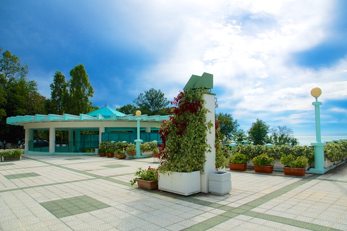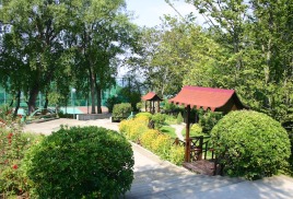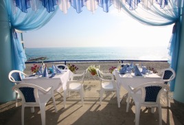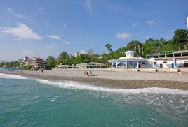 Пляж: собственный огороженный мелкогалечный пляж, протяженность пляжной полосы более 100м.,расстояние до пляжа 110 м. Оборудован: летний бар, аэрарий, дуевые кабины, кабины для переодевания, медпункт, пункт проката инвентаря, гостям бесплатно предоставляются лежаки и солнечные зонты. На пляже постоянно дежурят спасатели.