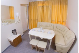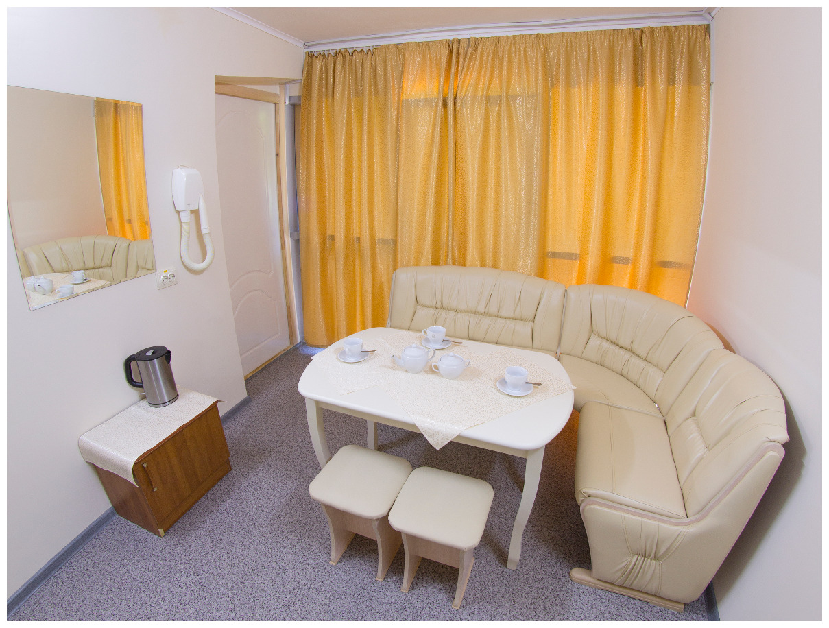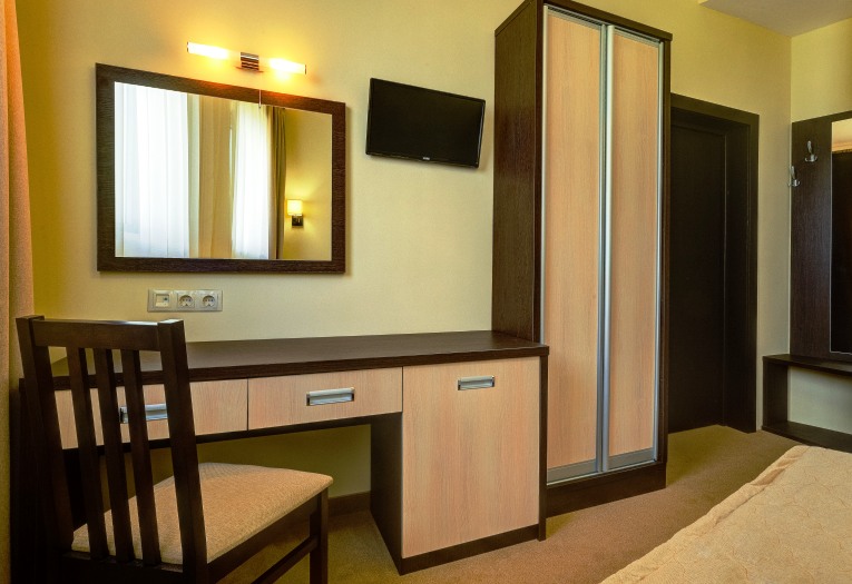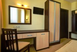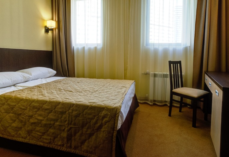 - 1-но местный 1 категории: однокомнатный одноместный номер, без балкона, площадью 13,6 м2. В номере: двухспальная кровать, шкаф, туалетный столик с зеркалом, кондиционер, телевизор, холодильник, санузел с душевой кабиной.