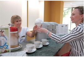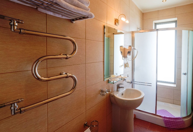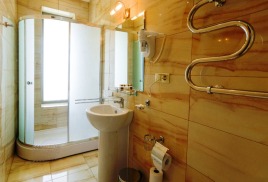 - 2-х местный 1 категории КОМФОРТ: двухместный однокомнатный номер площадью 24,5 м2. Все номера данной категории с балконами и видом на море. В номере: две 1,5 спальные кровати, шкаф, туалетный столик с зеркалом, кондиционер, телевизор, холодильник, санузел с душевой кабиной.