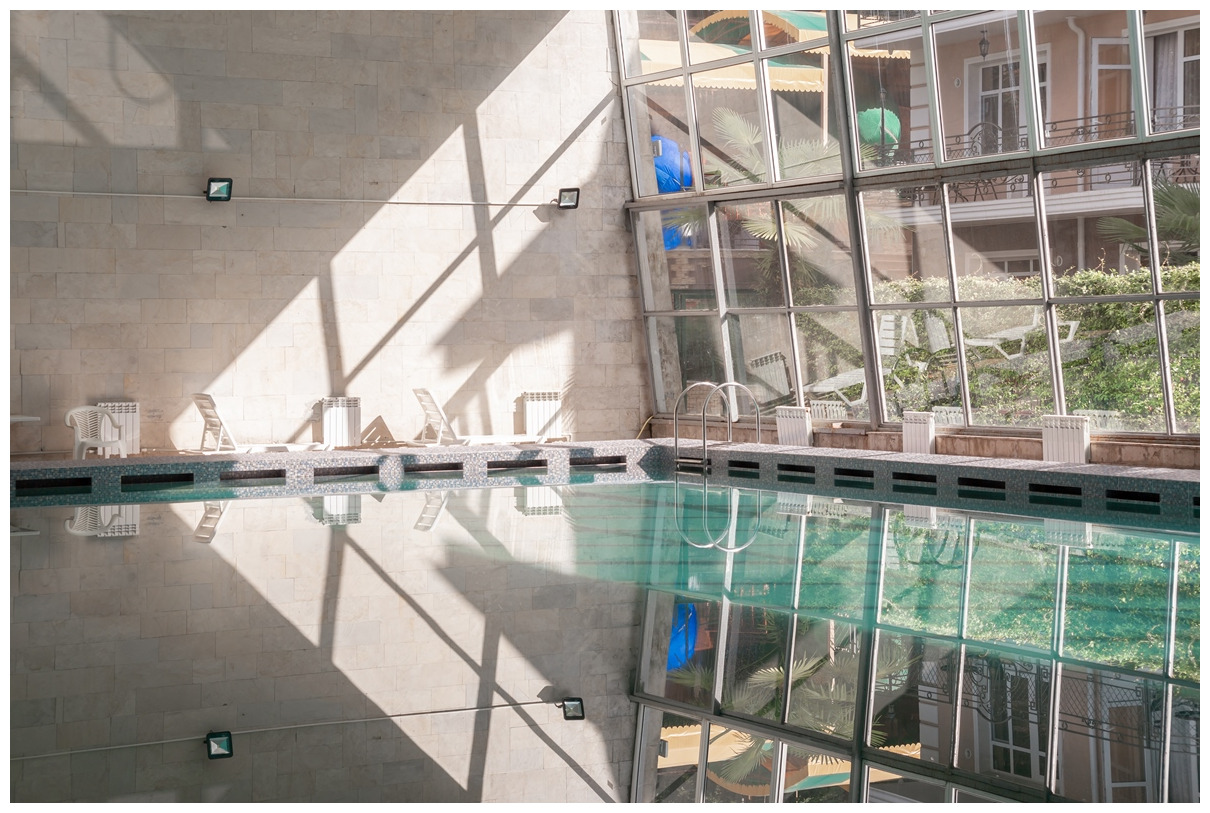 - крытый бассейн с морской подогреваемой водой: температура воды 26 градусов, размер 24х14м., глубина от 1,2 до 1,7 м. Бассейн работает в межсезонье с 1 октября по 31 мая.