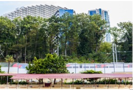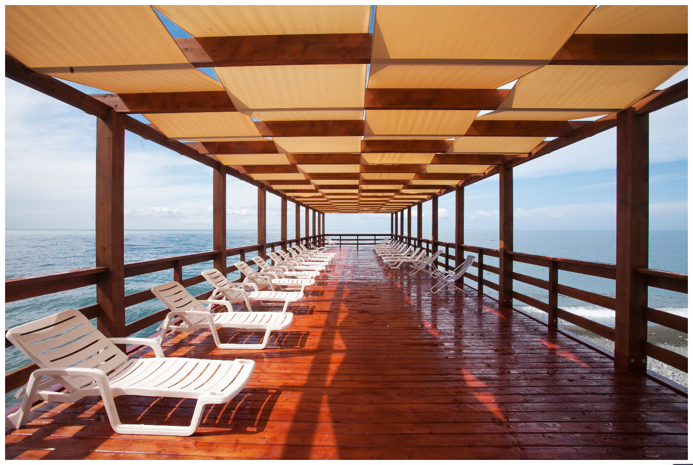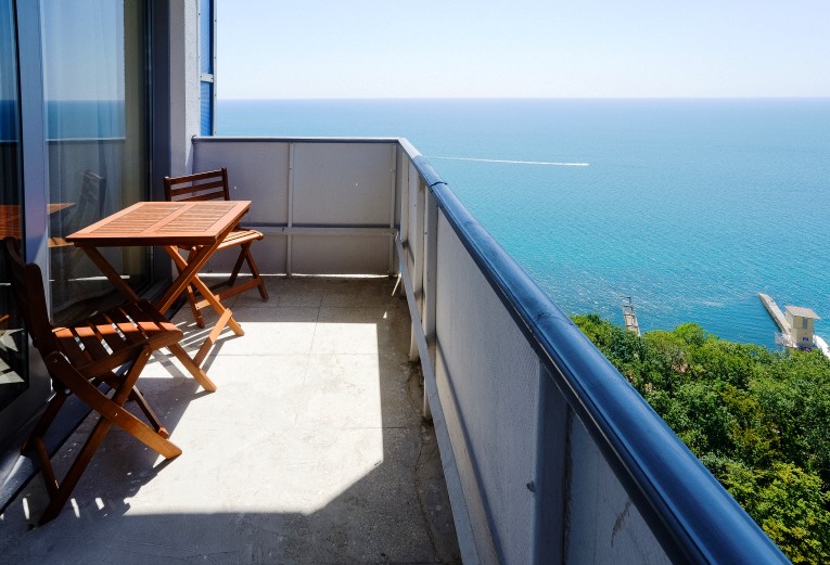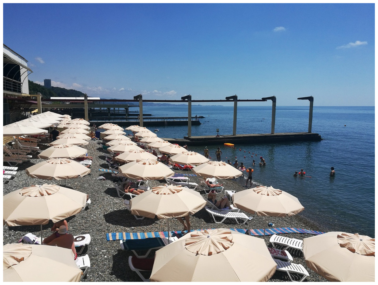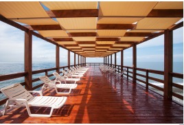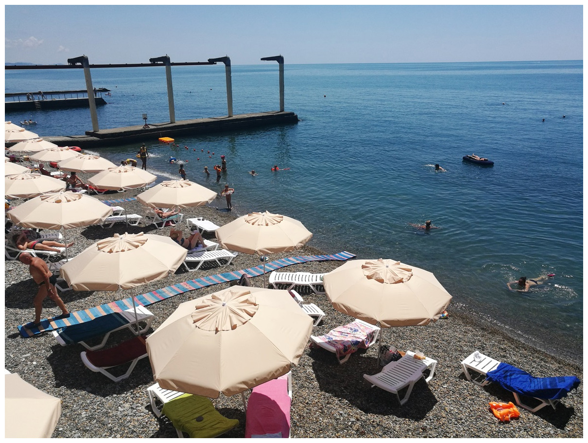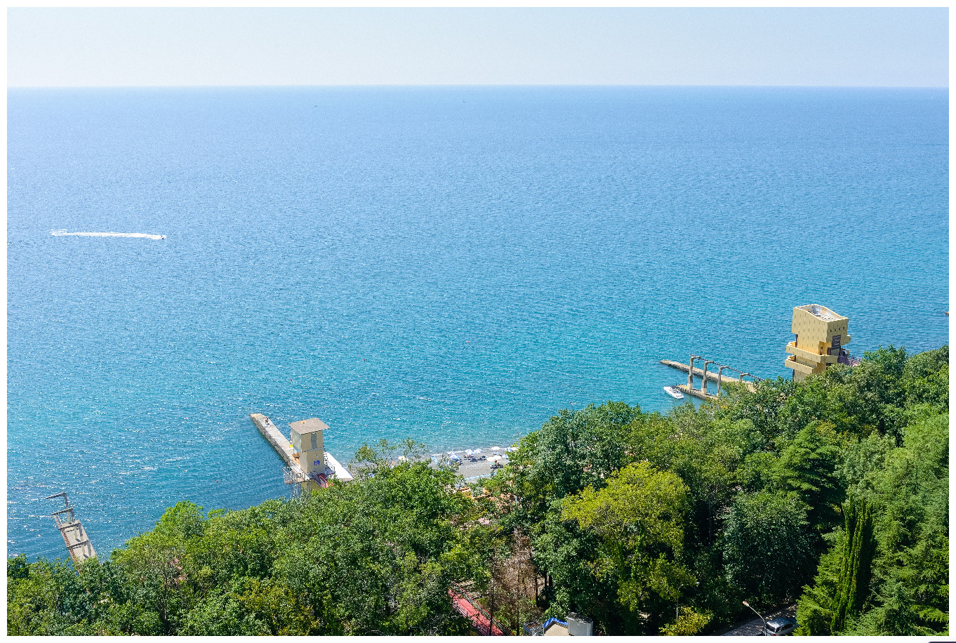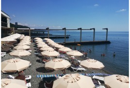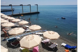 Пляж: расстояние до моря 50 м., пляж собственный, оборудованный (лежаки, коврики, шезлонги, душ, туалет, мед.пункт, услуги спасателей), спуск к пляжу на лифте.