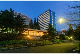 Номерной фонд: 16 этажный корпус с лифтом, столовая и мед кабинеты в корпусе, бассейн отдельно стоящее здание, без теплых переходов. примерно 20 м. от главного корпуса