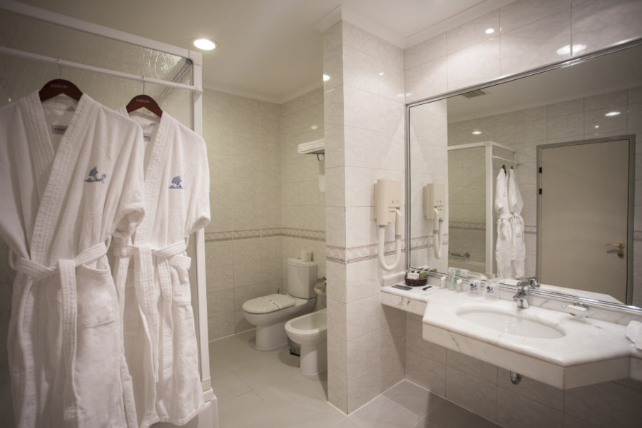 В номере: душ, туалет, фен, ТВ, мини-холодильник, телефон, кондиционер, двуспальная кровать и две раздельные кровати, балкон, мебель на балконе. Данный номер состоит из двух стандартных однокомнатных номеров, соединенных межкомнатной дверью.