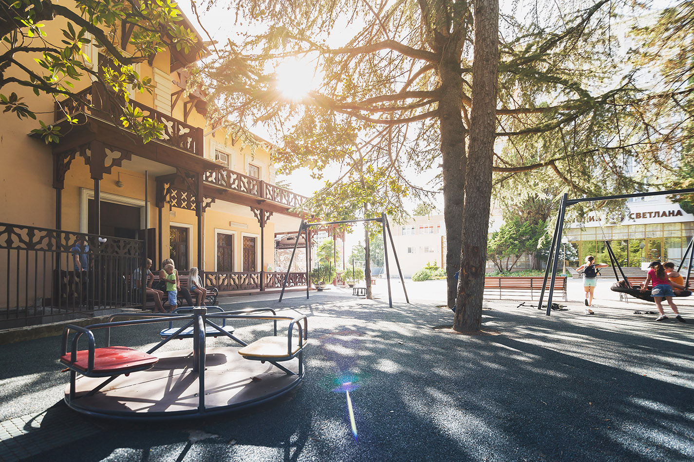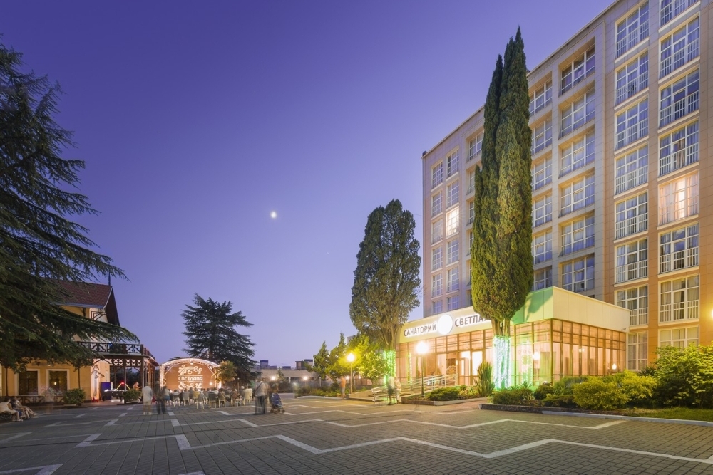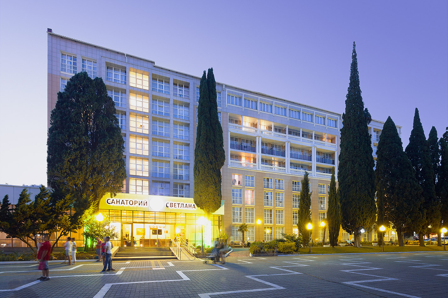 Санаторий «Светлана» расположен рядом с набережной и Морским портом. Отреконструирован в 2013 году. В нескольких минутах ходьбы находятся главные площадки курорта, Летний и Зимний театры, концертный зал «Фестивальный», зал органной и камерной музыки, Художественный музей. В пешей доступности - питьевой бювет с минеральной водой «Пластунская».