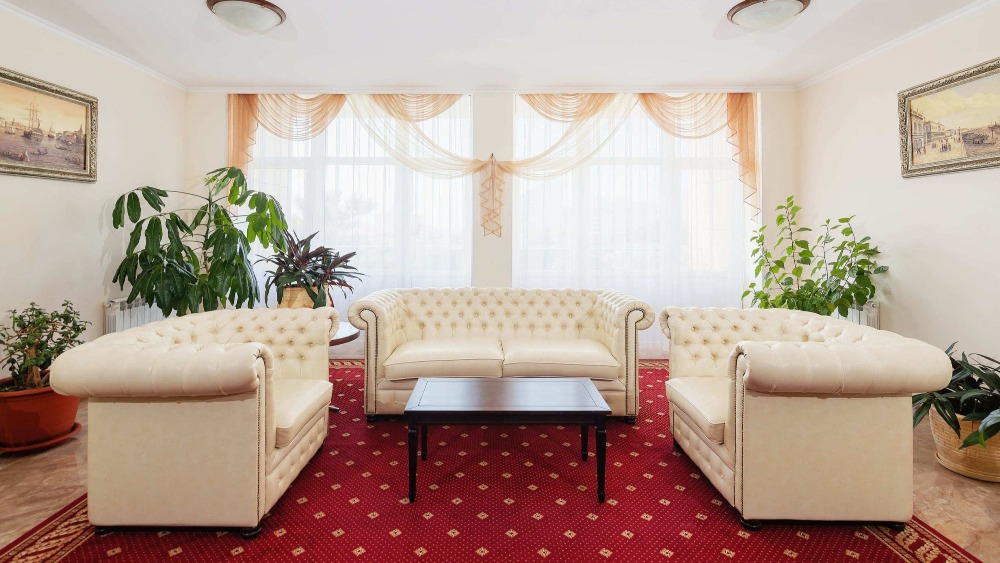 - 2-х местный 2-х комнатный полулюкс. Площадь номера, кв.м: 35. В спальне: двуспальная кровать, прикроватные тумбочки с настольными светильниками, телевизор. В гостиной: современная мягкая мебель (диван раскладывается в дополнительное спальное место), телевизор, кухонный уголок с мини-холодильником, электрочайником, электроплиткой, раковиной, набором посуды. В санузле: ванна, фен, полотенцесушитель, туалетные принадлежности, пляжные полотенца. В номере есть шкаф-купе, сейф, гладильная доска, сушилка для белья, кондиционер, телефон с внутренней связью и Wi-Fi.