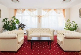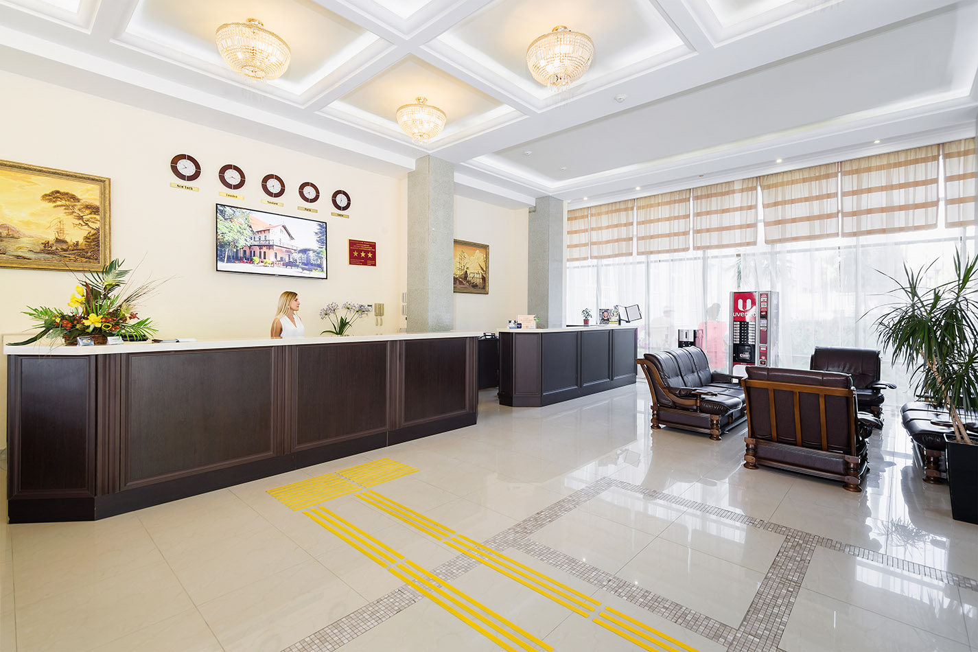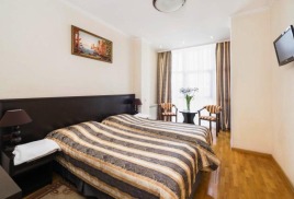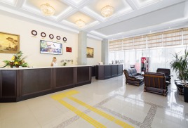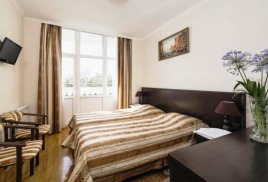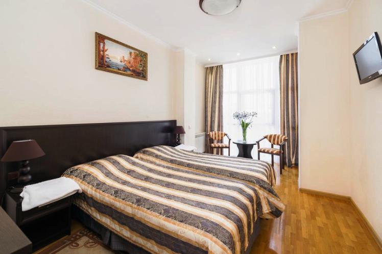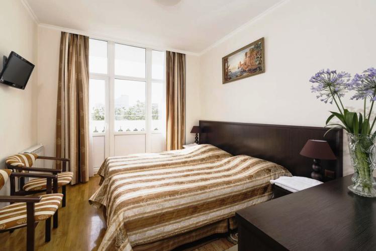 - 2-х местный номер стандарт. Площадь номера, кв.м: 17. В номере: две отдельно стоящие кровати с прикроватными тумбочками и настольными светильниками, встроенный шкаф-купе, зона отдыха с креслами и журнальным столиком, письменный стол, мини-холодильник, телевизор, кондиционер, сейф, набор столовой посуды, телефон с внутренней связью, Wi-Fi. В ванной комнате: душевая кабина, фен, полотенцесушитель, туалетные принадлежности. В некоторых номерах есть балкон.