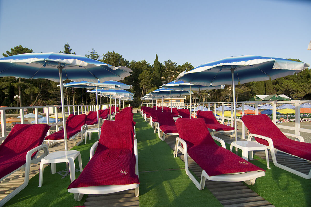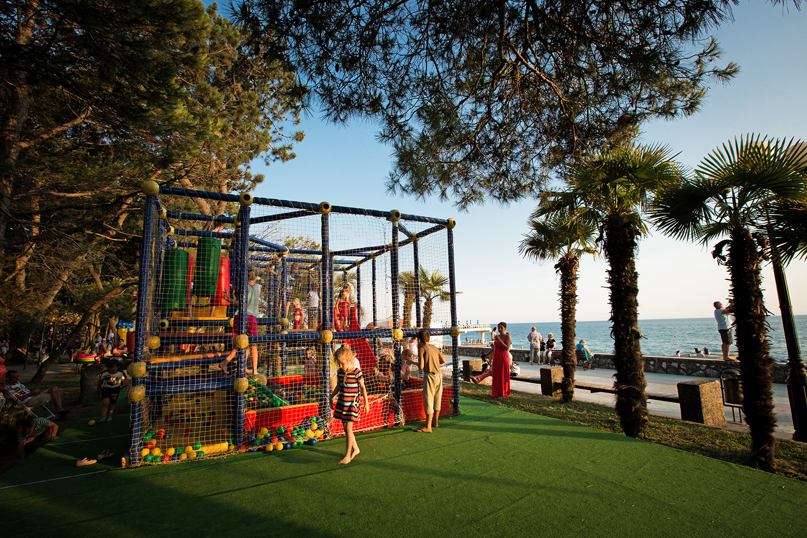 Пляж: собственный галечный оборудованный пляж протяженостью 375 м. На пляже есть кабинки для переодевания, летние душевые кабинки, мужской и женский аэрарии, пляжные зонты и шезлонги. Для отдыхающих номеров категории «Люкс» отдельный VIP-сектор. На пляже работают спасательная служб, летнее кафе, детские аниматоры, а по вечерам устраиваются дискотеки.