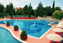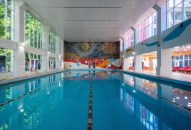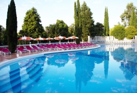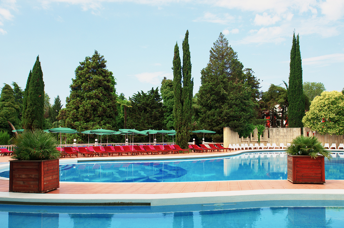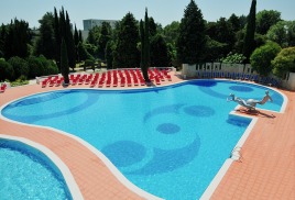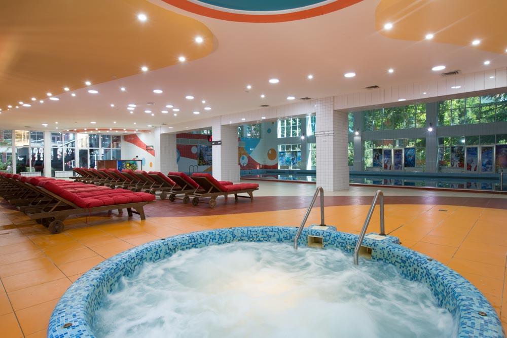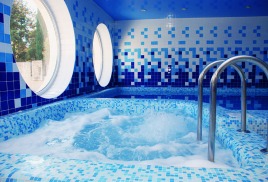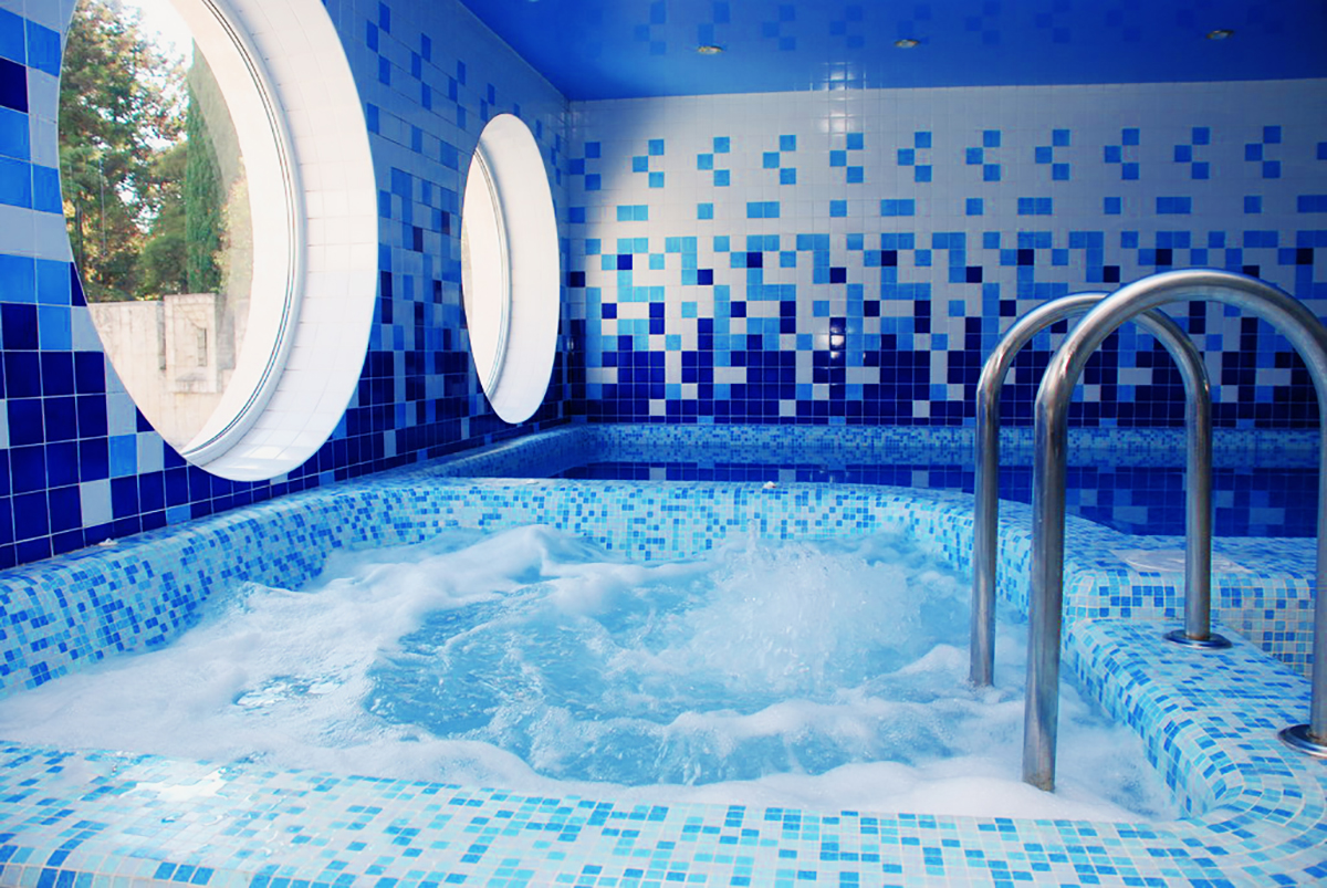 - крытый подогреваемый бассейн с морской водой, размер 25х12 м, работает с октября по май. Оснащен финской парной и хамамом, фитобаром, душевыми кабинками, зоной отдыха с джакузи и лежаками.