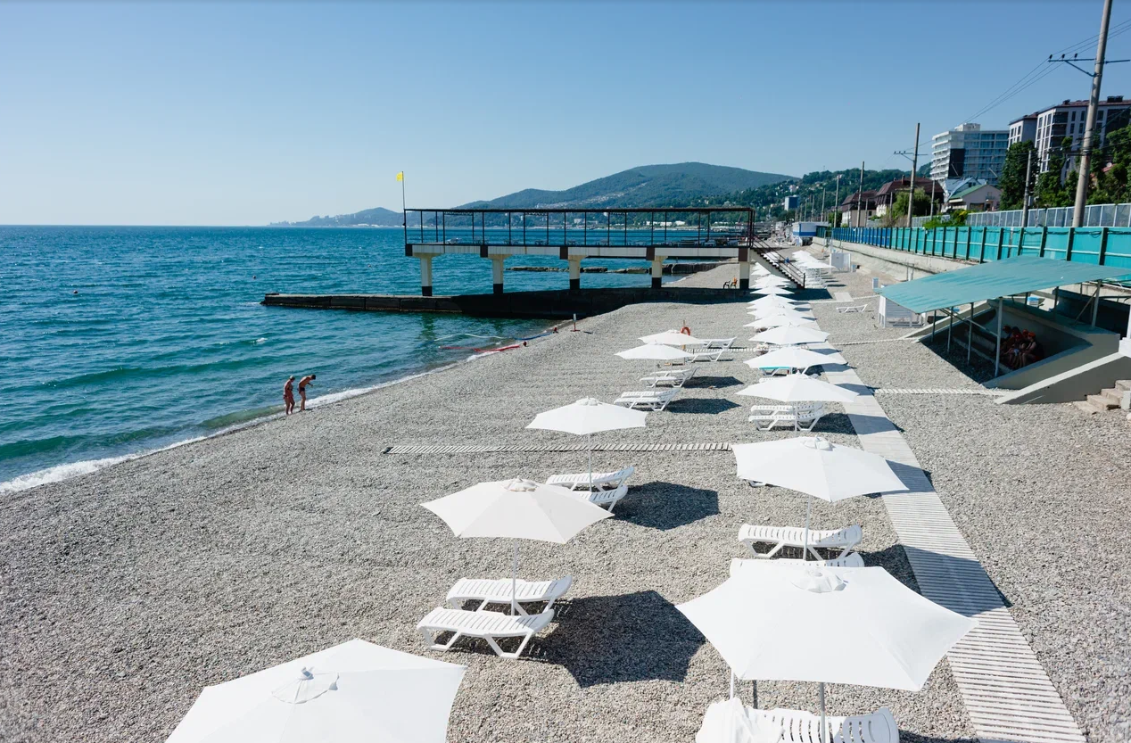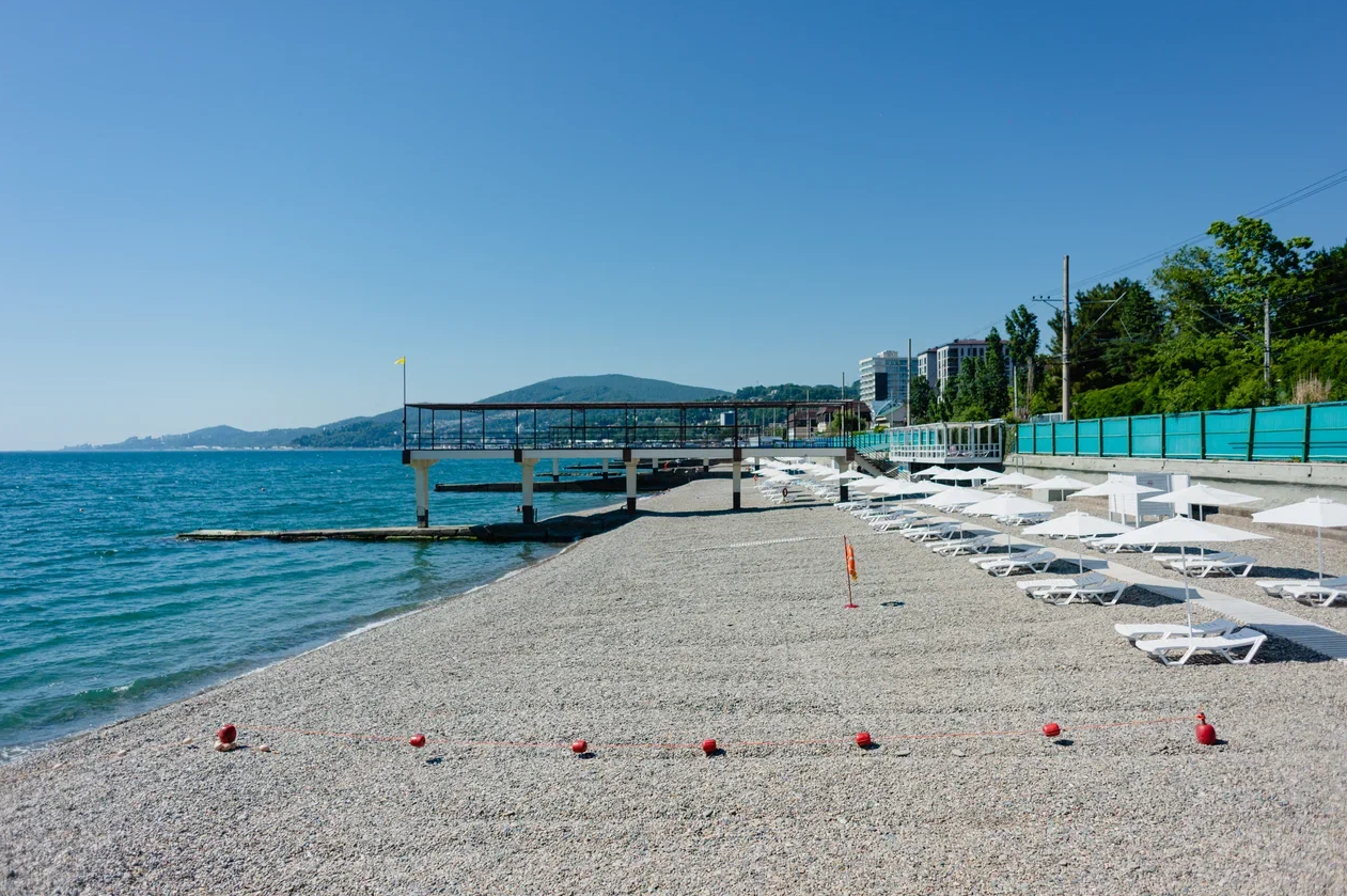 Пляж: к услугам гостей санатория «Знание» пляж протяженностью 200м. Проход на пляж осуществляется через подземный переход под железнодорожным полотном. Благоустроенный пляж с мелкой галькой. Для гостей санатория предоставляются лежаки и зонты от солнца. Расстояние от пляжа до первого спального корпуса 50 метров, до второго спального корпуса — 150м.
