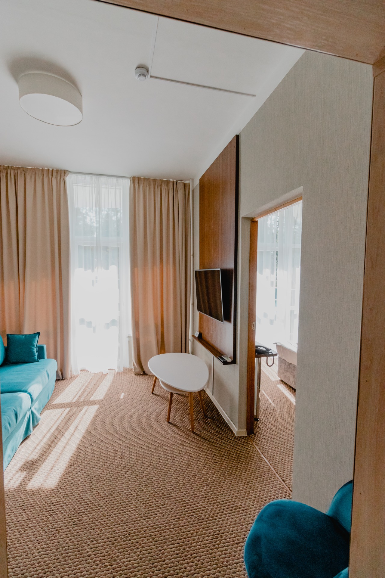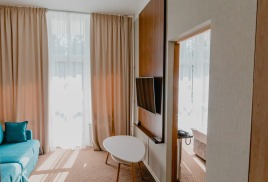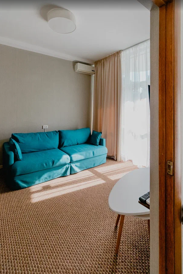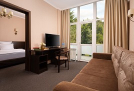 - Семейный 2-х комнатный: Вид на парк. Двухкомнатный номер площадью 35м² (без площади балкона), состоит из гостиной, спальни и ванной комнаты. В гостиной находится мягкая мебель, телевизор, холодильник, телефон, шкаф, в спальне – двуспальная кровать 1,8 м, прикроватные тумбочки, стол. Ванная комната оснащена ванной. На балкон можно попасть из спальни и из гостиной.