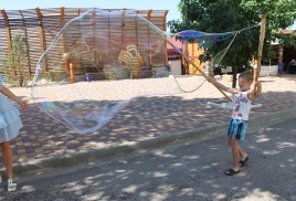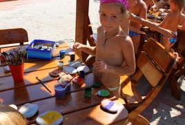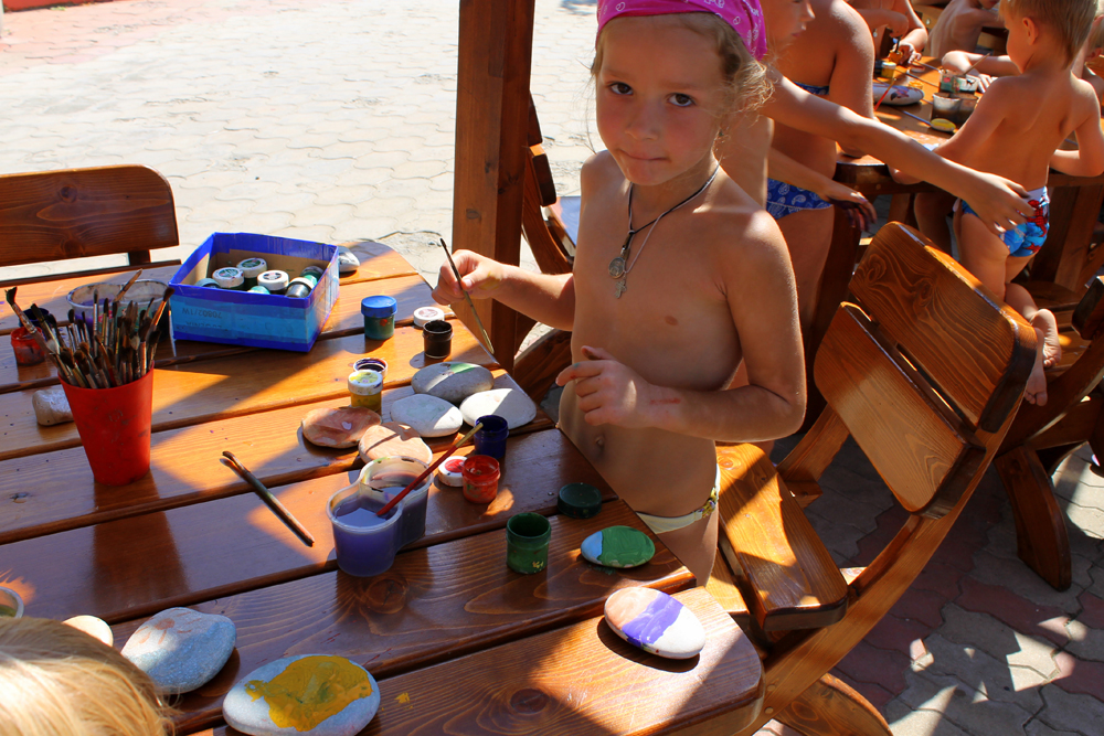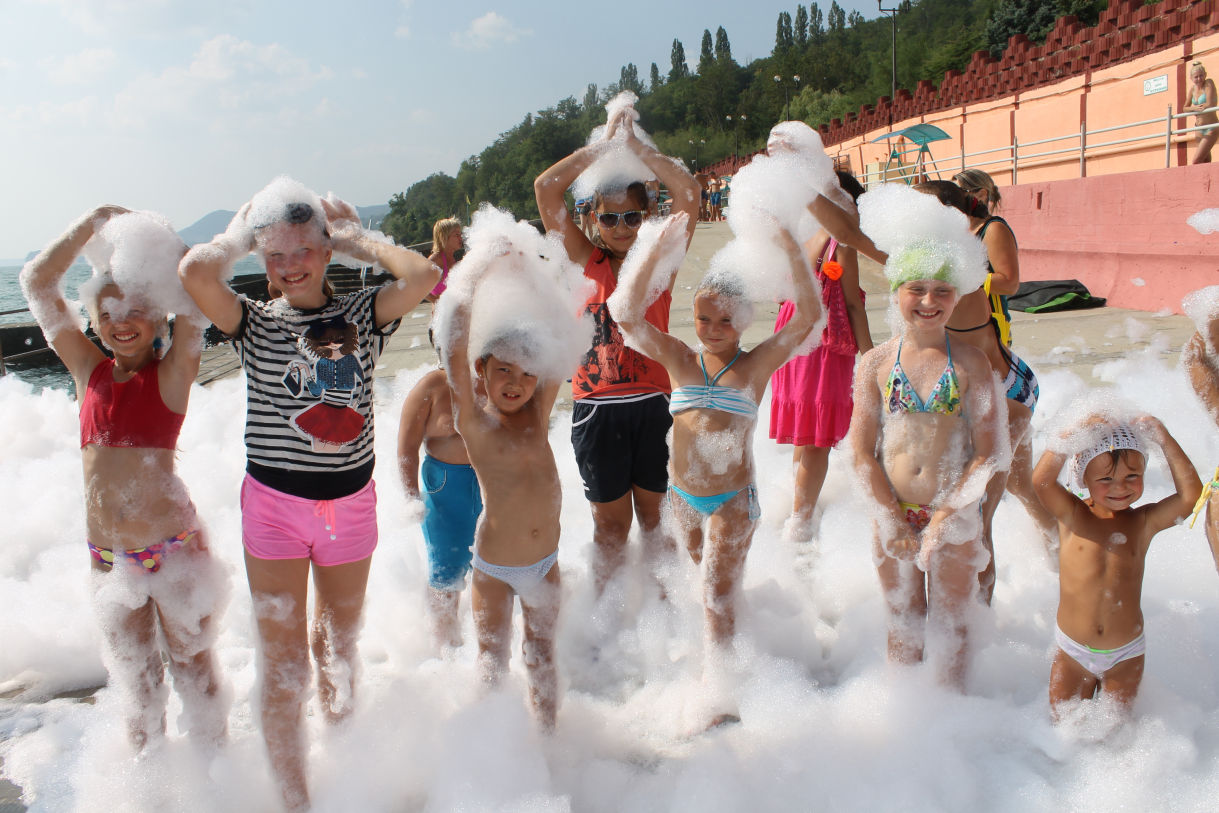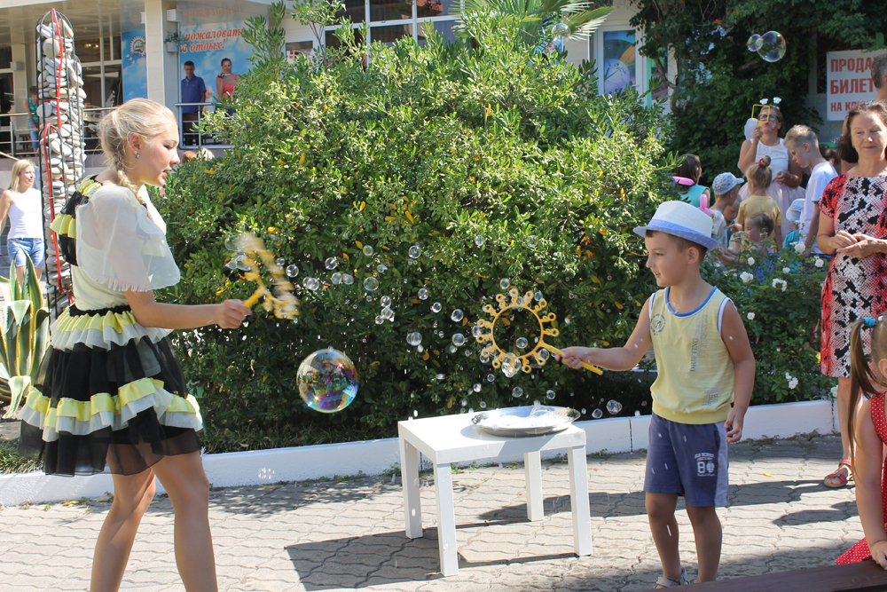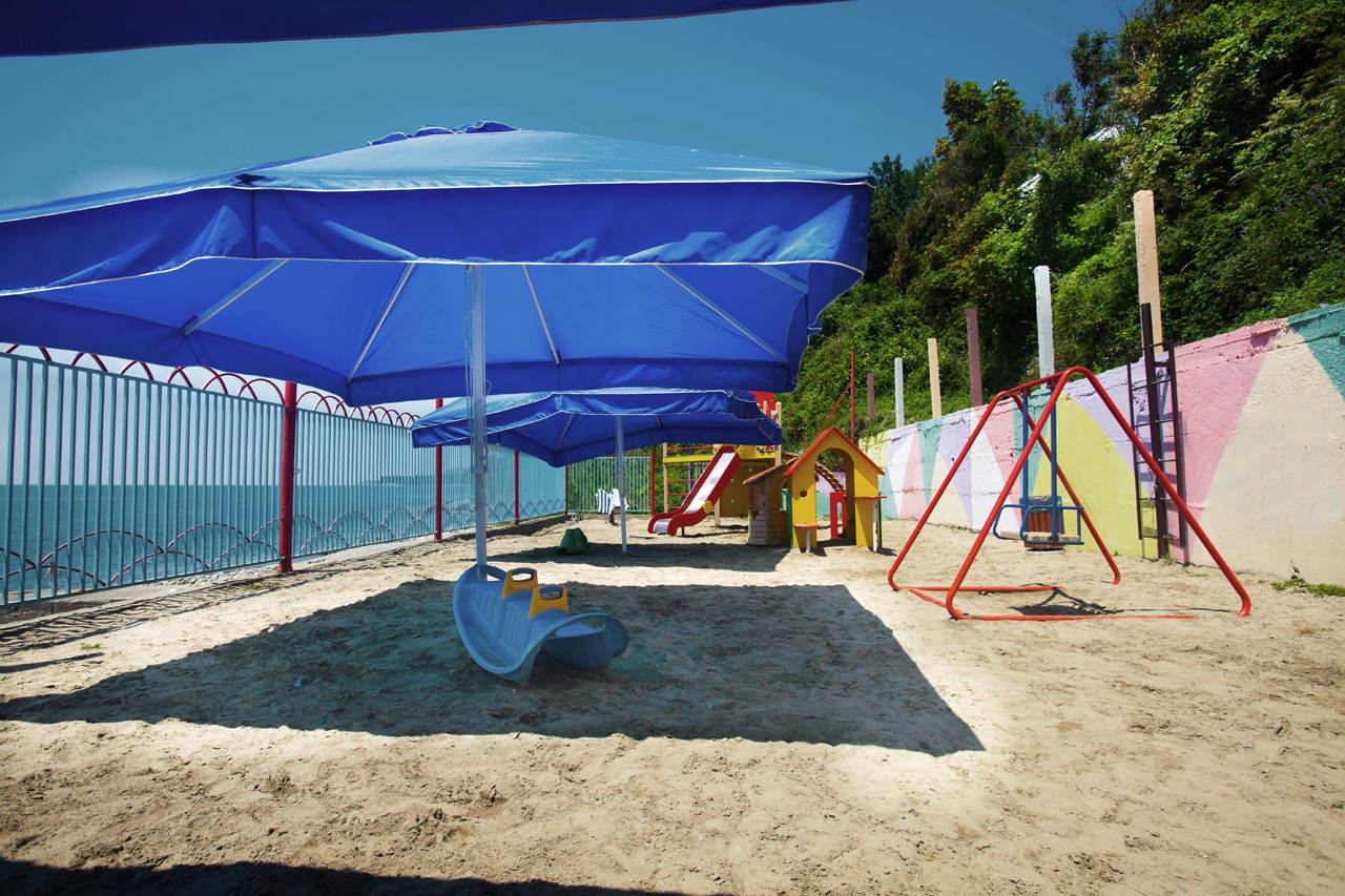 Закрытая, охраняемая территория, специально оборудованный детский пляж с мелкой галькой, детский бассейн, 2 игровые детские площадки, детская комната, бизнес – центр с компьютерными играми Х_ВОХ и киннект, библиотека с большим фондом детской литературы, и, конечно, анимационные программы