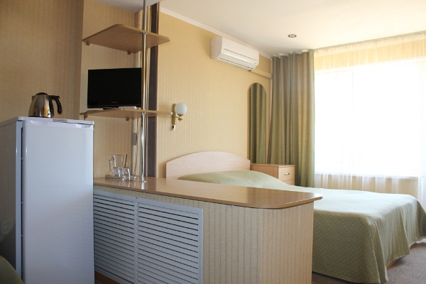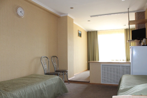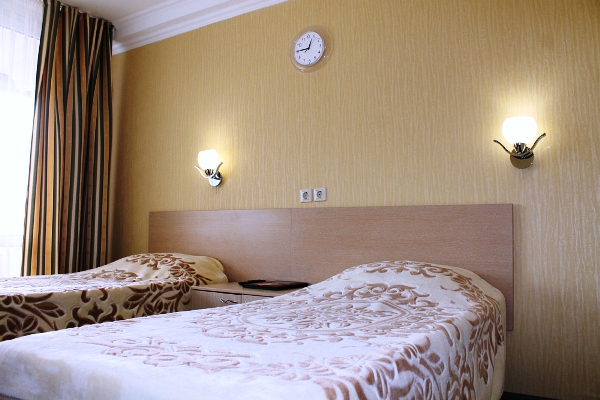 - Двухместные однокомнатные стандартные номера с раздельными кроватями / с двуспальной кроватью (площадью 12 кв. м). В номере: две кровати, ванная комната с ванной, телевизор, радио, холодильник, телефон. Есть номера с кондиционером. Максимальное размещение – 3 человека, 1 дополнительное место — раскладное кресло-кровать.