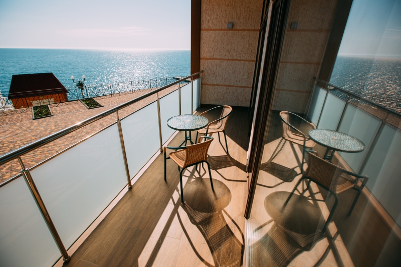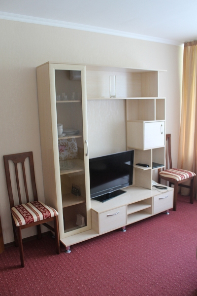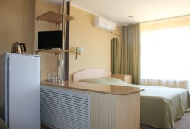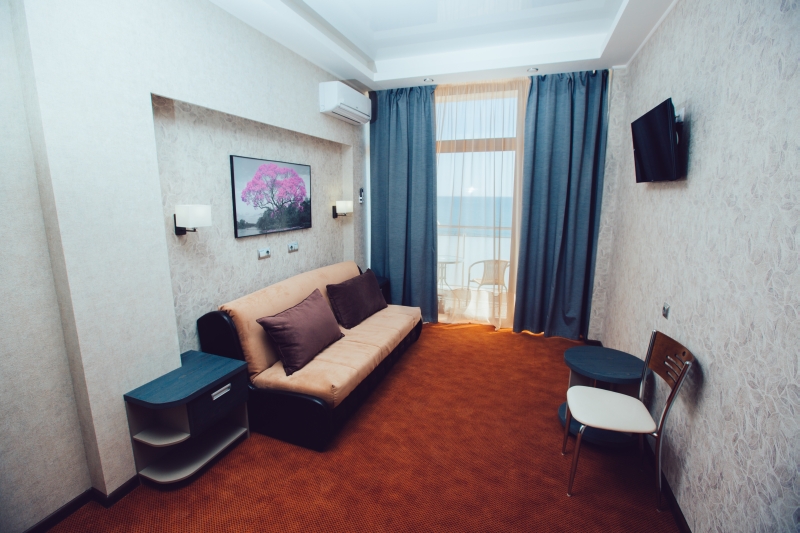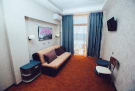 - 2-х местный 2-х комнатный Люкс (площадью 35 кв.м). В номере: прихожая, гостиной с мини-кухней, спальней и ванной комнатой, сплит-системы, телевизоры, радиотелефоны, «Wi-Fi». Балкон с потрясающим видом на море.
