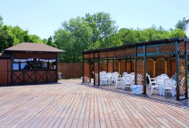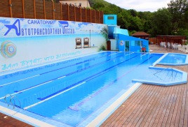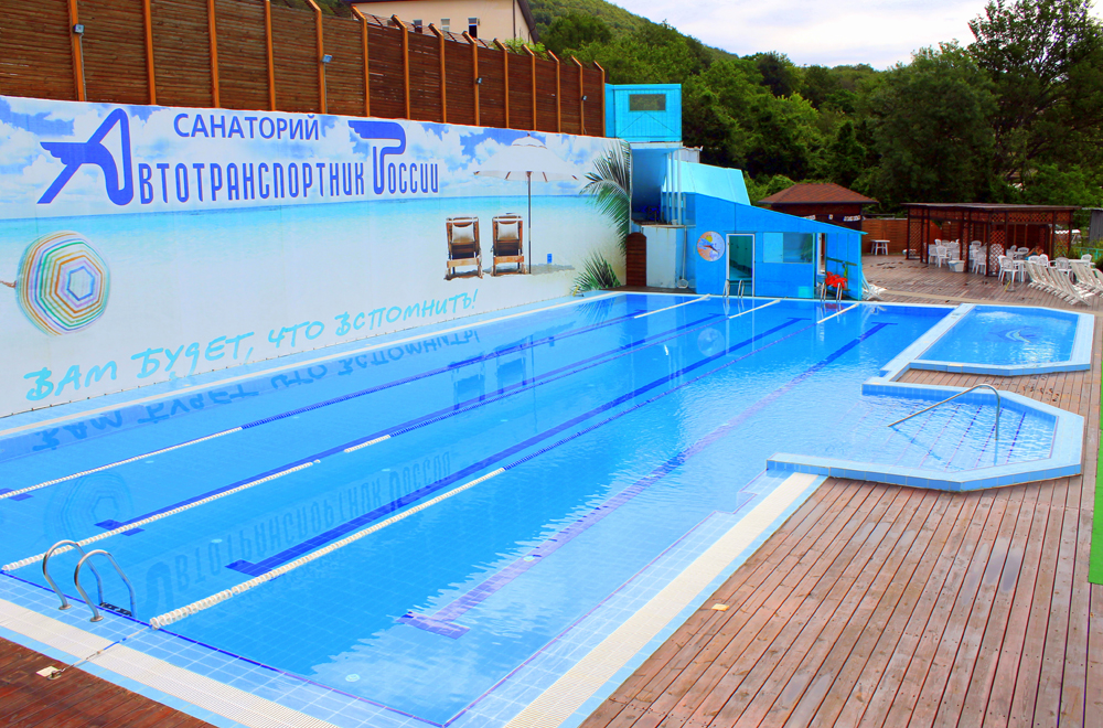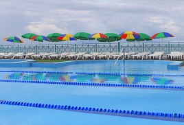 - Открытый бассейн, с подогревом воды, круглогодичного действия. Размером 25х11м. S=275 м/2, глубина средняя 1,6 м. (от 1.2 до 1.8), вода t 27-28 градусов, система регенерации (очистка), 4 плавательных дорожки по 25 метров . Посещение по СаНПину 50 человек единовременно.