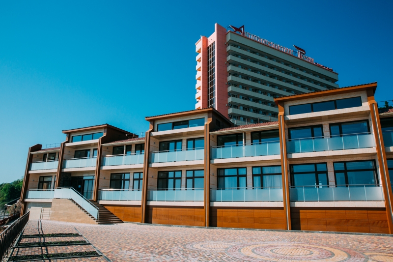 Номерной фонд: К услугам отдыхающих 12 – этажный спальный корпус на 448 мест. Это 224 современных, уютных номеров различной степени комфортности. Все номера с видом на море и горы. Корпус оборудован тремя новыми лифтами (2 пассажирских, 1 грузовой) с круглосуточным подъемом и спуском. Подача горячей и холодной воды осуществляется круглосуточно. Служба приема ведет круглосуточный прием отдыхающих. Санаторий имеет круглосуточный пост охраны в зданиях, где расположены жилые, лечебные, спортивно-оздоровительные и культурно-развлекательные помещения.