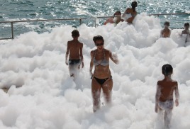 На пляже находятся лодочная станция, детская игровая площадка, спасательный медицинский пункт, кафе, раздевалки, душевые и туалеты; прокат пляжного инвентаря, солнцезащитных зонтов, катамаранов, гидроциклов, лодок и др.