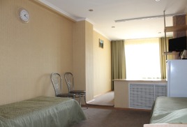 - Двухместные номера "Супериор" (16 кв м) В номере: телевизор, холодильник, радио, телефон, санузел с ванной, сплит-система, 1 дополнительное место - кресло-кровать.